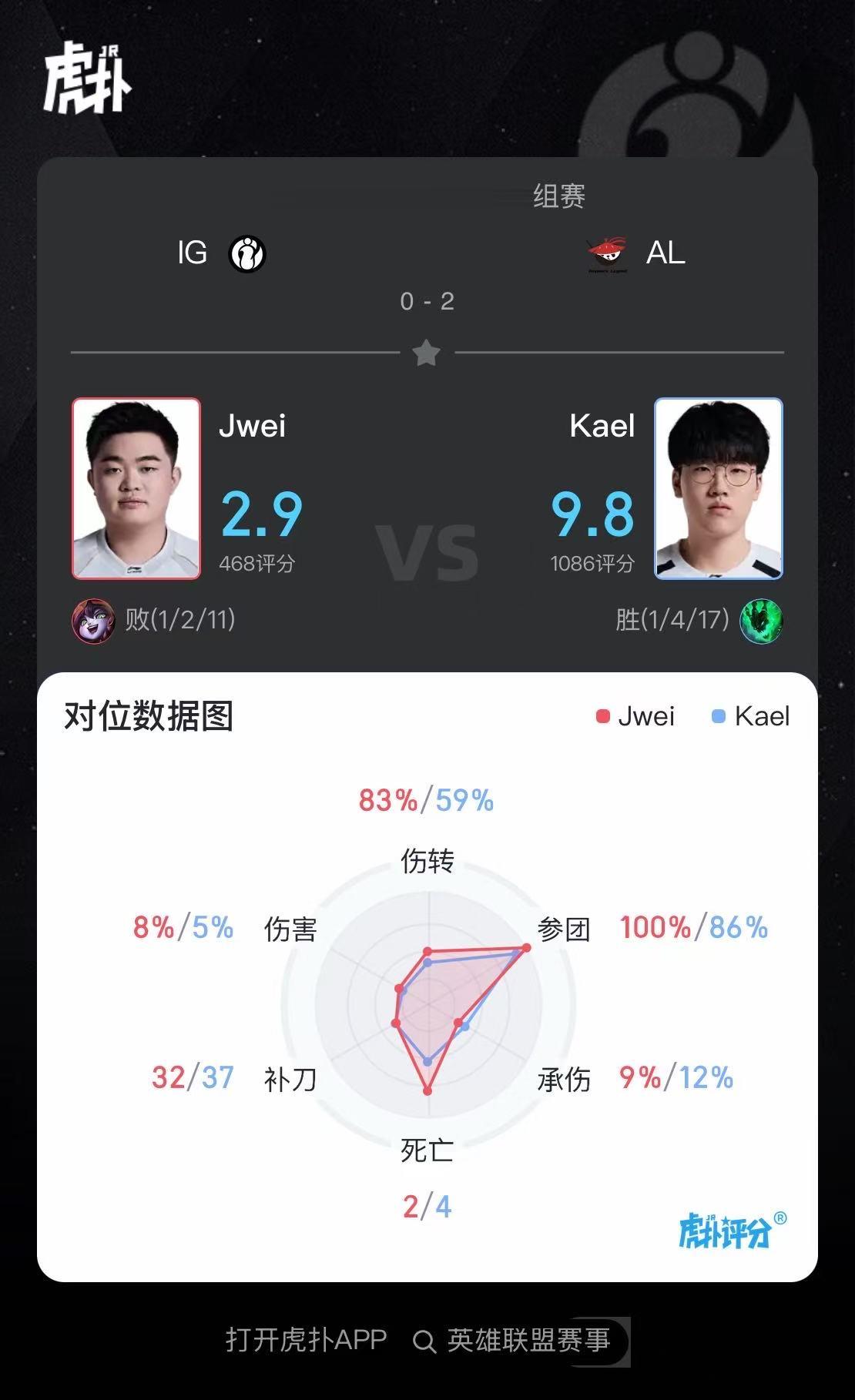 虎扑01月15日讯在刚刚结束的AL对阵IG的BO3比赛中,Kael锤石打出1/4/17战绩,斩获AL对阵IG第二局MVP