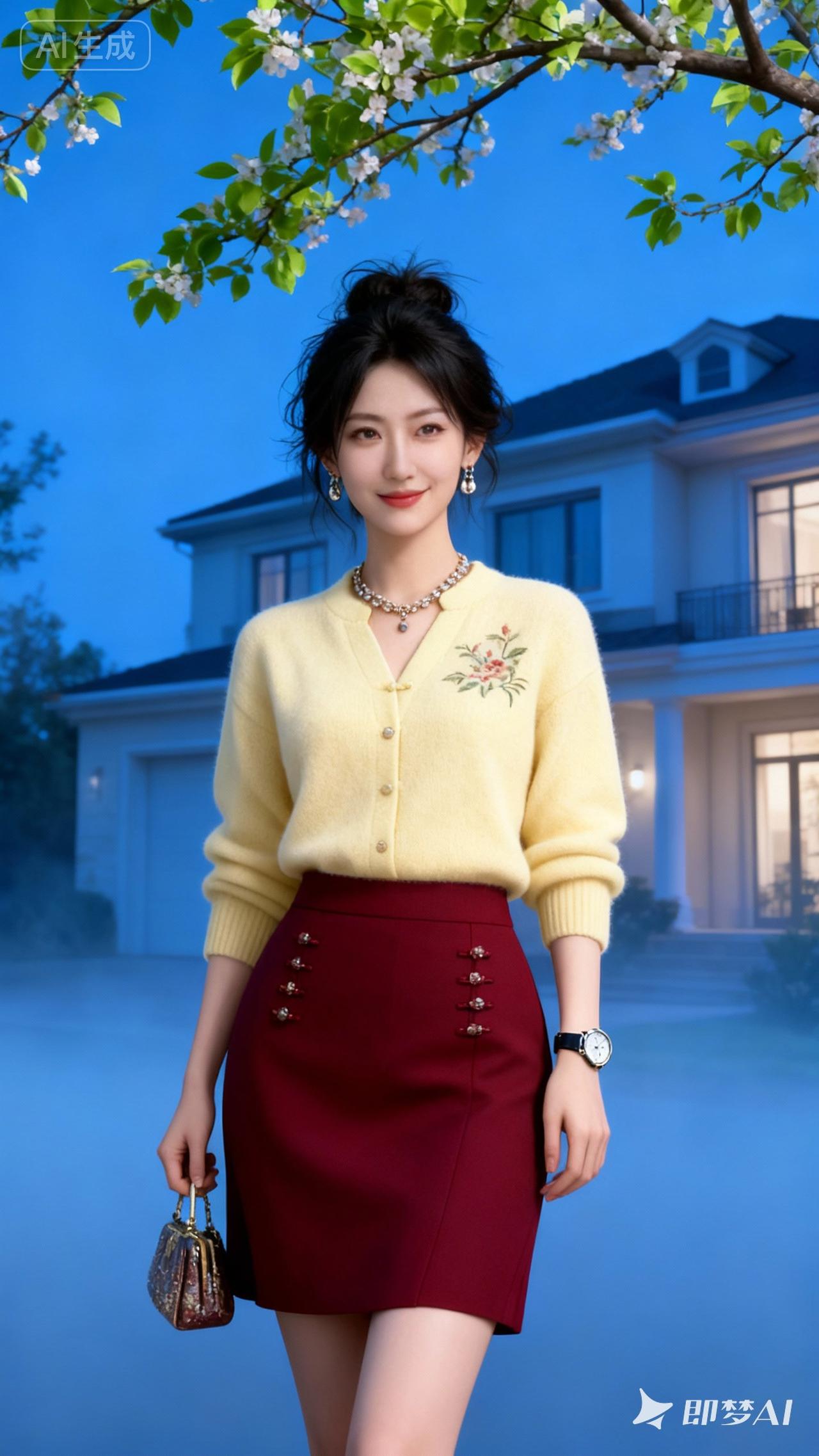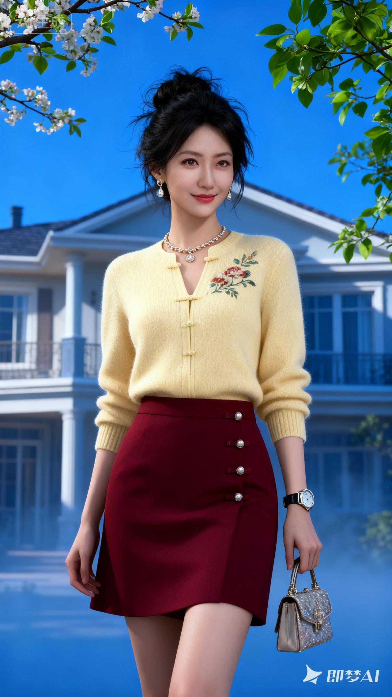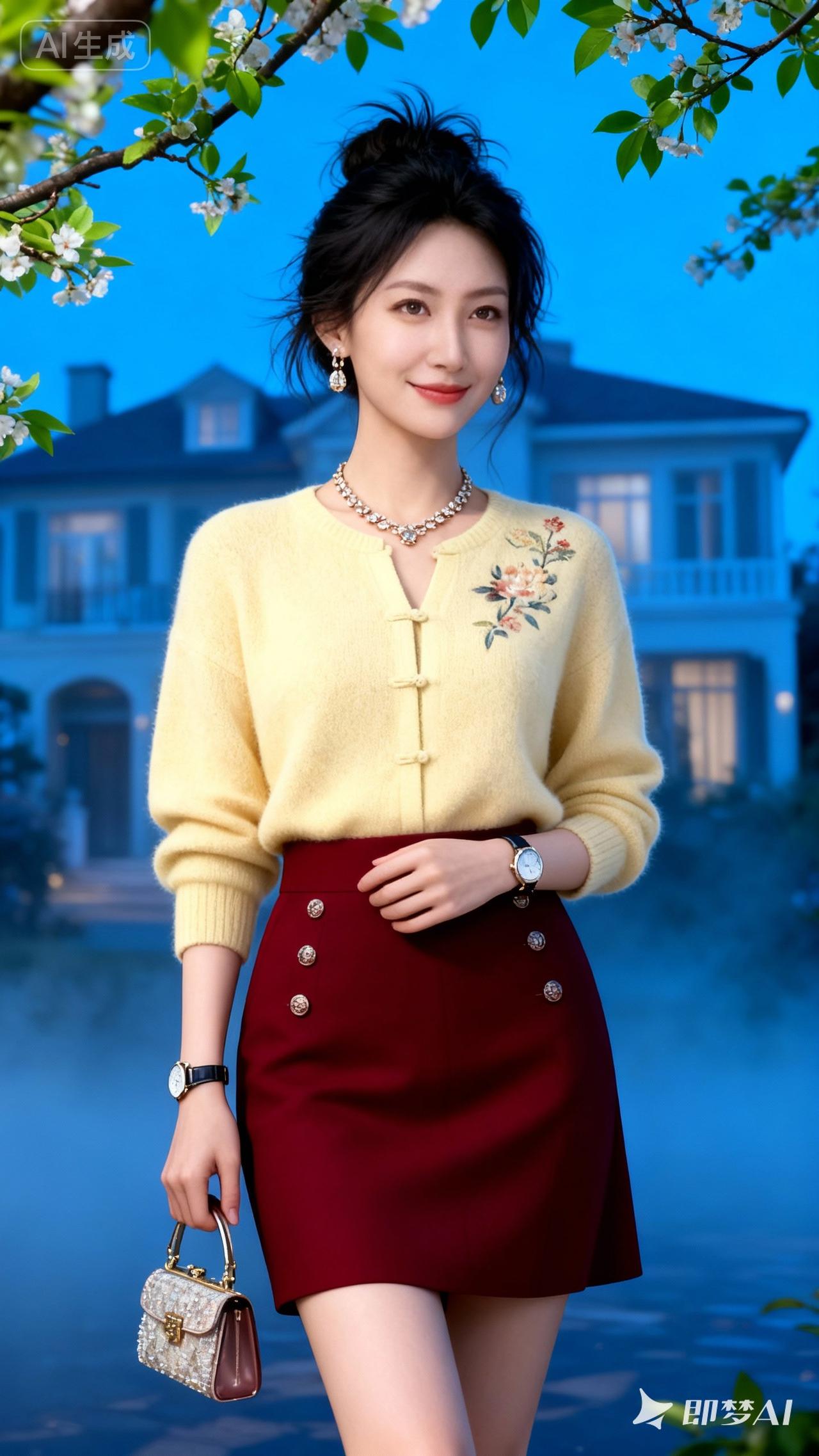 春日穿搭指南:复古毛衣+酒红色短裙,优雅气质满分!🌸👗
