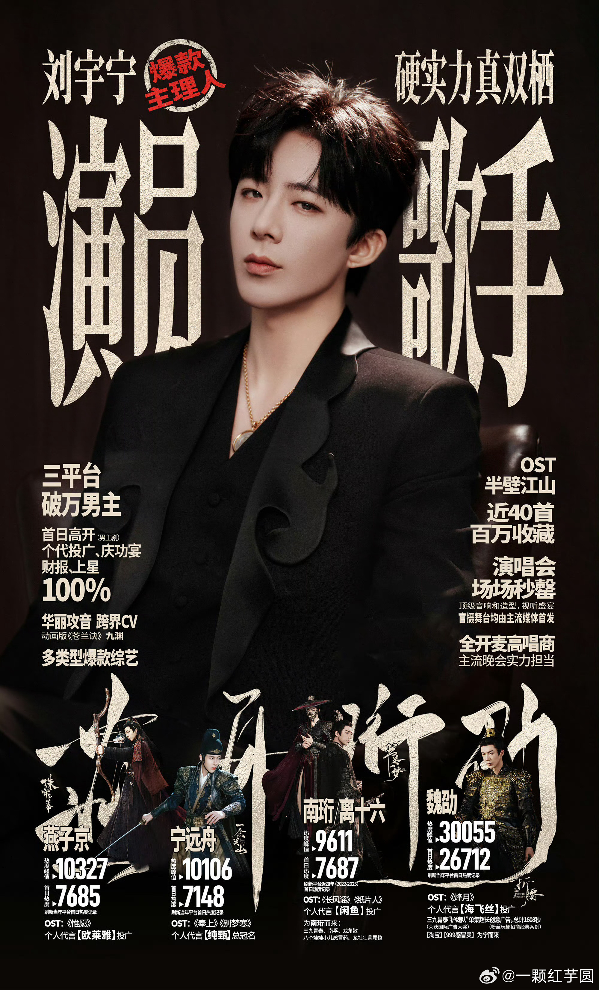 摩登兄弟酷云年度角色热度发布,刘宇宁魏劭腾讯、爱奇艺双平台第一🏆🏆。酷云热剧榜,唯一一位2部主演剧《折腰》《书卷一梦》同时上榜。三平台破万男主刘宇宁爆剧制造机🔥!