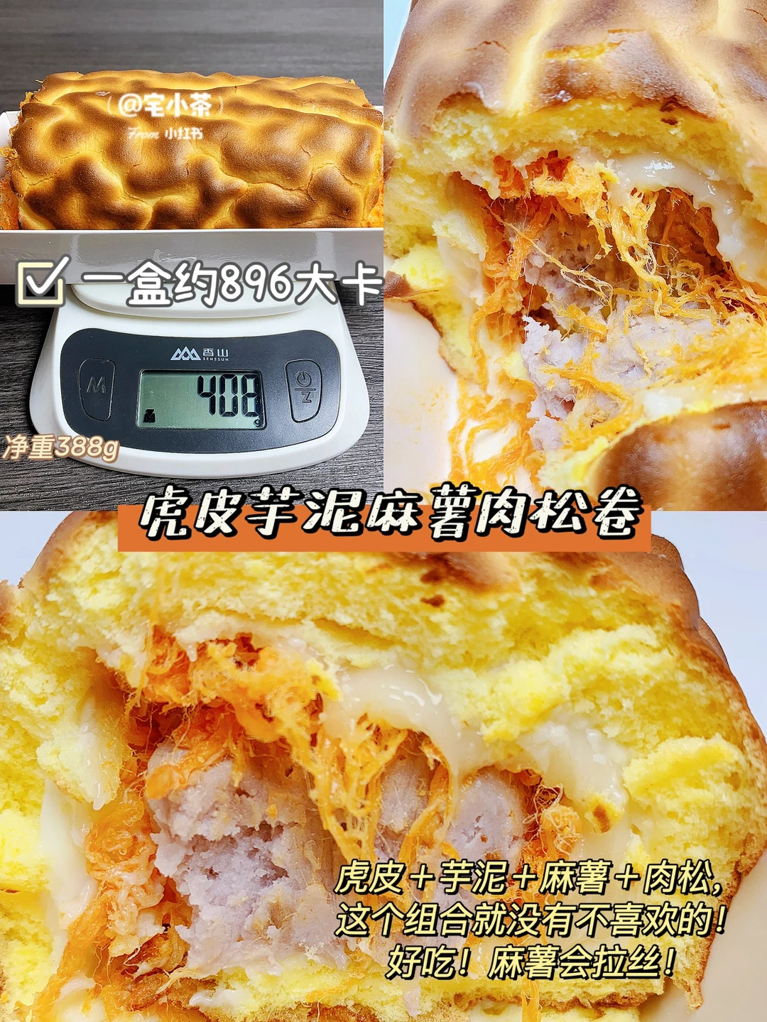 🔸虎皮+芋泥+麻薯+肉松,这个组合就没有不喜欢的!好吃!麻薯会拉丝!