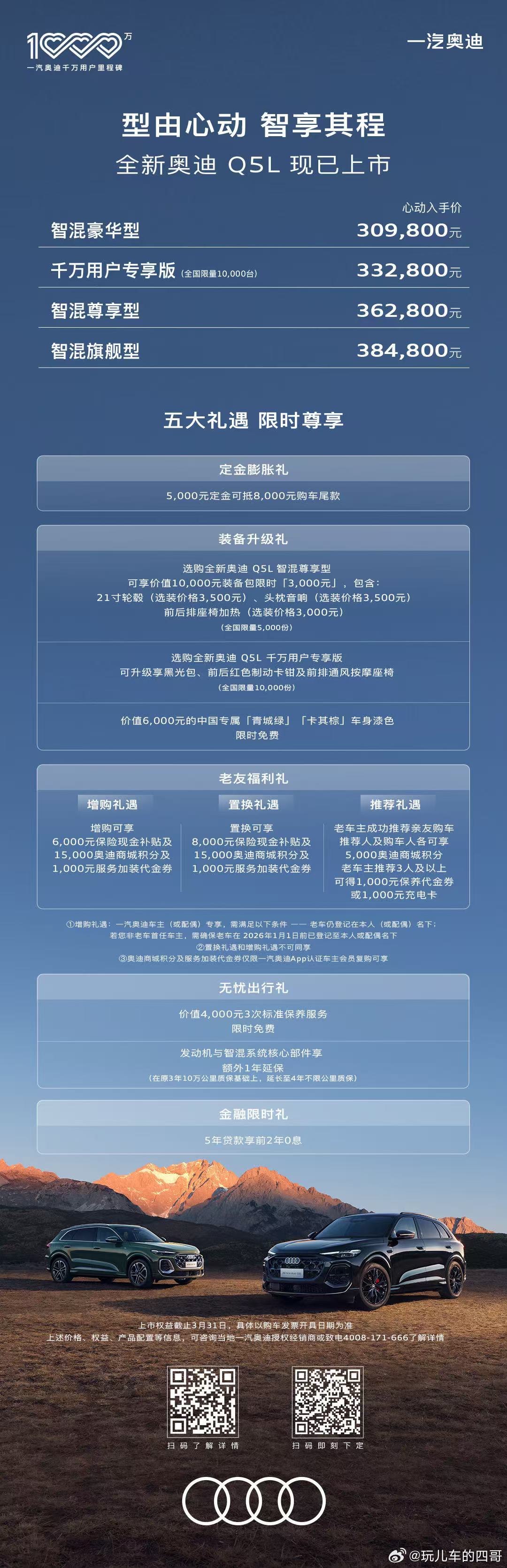 奥迪放大招!全新Q5L预售31.3万起,搭华为辅助驾驶+第五代EA
