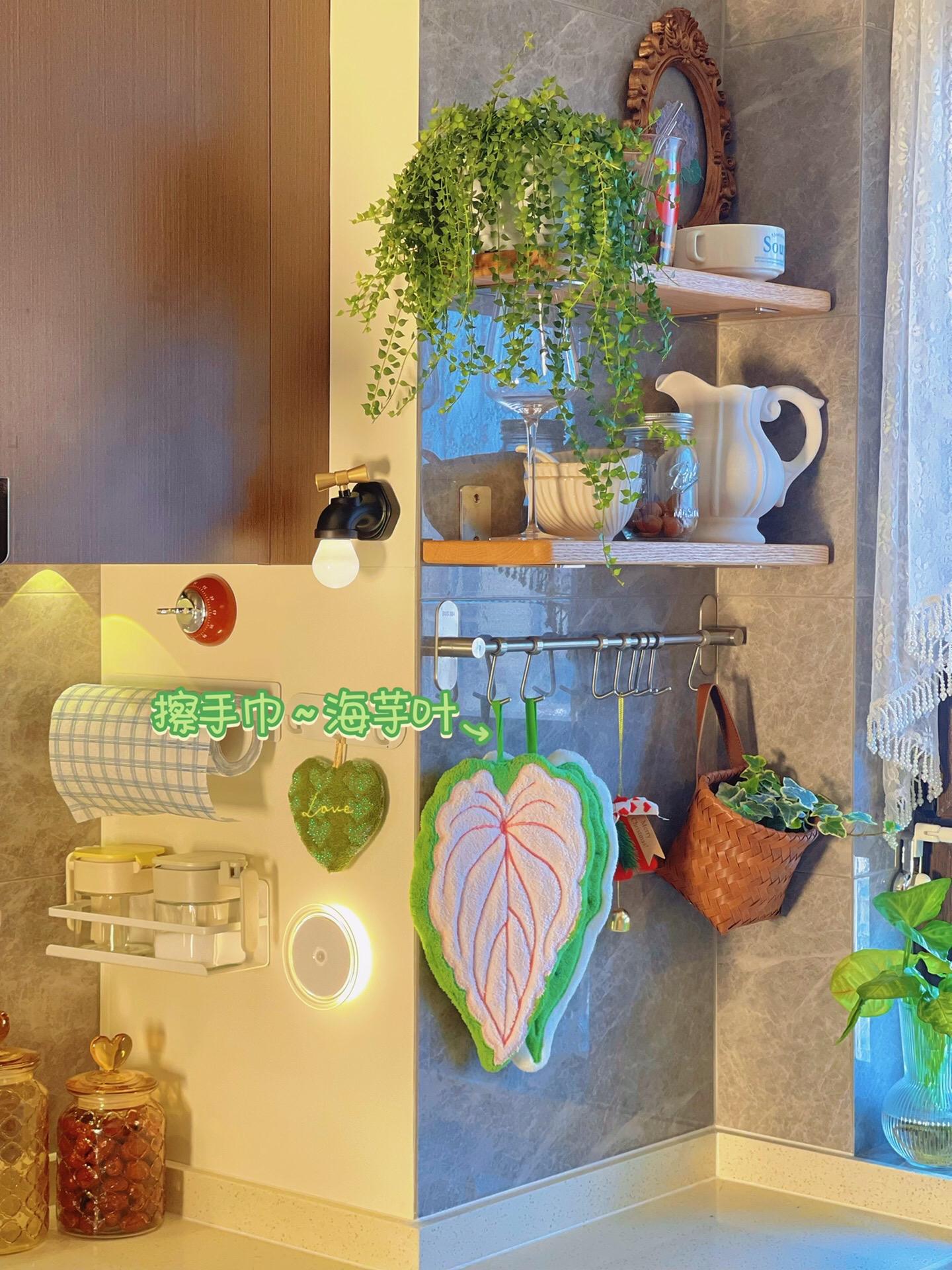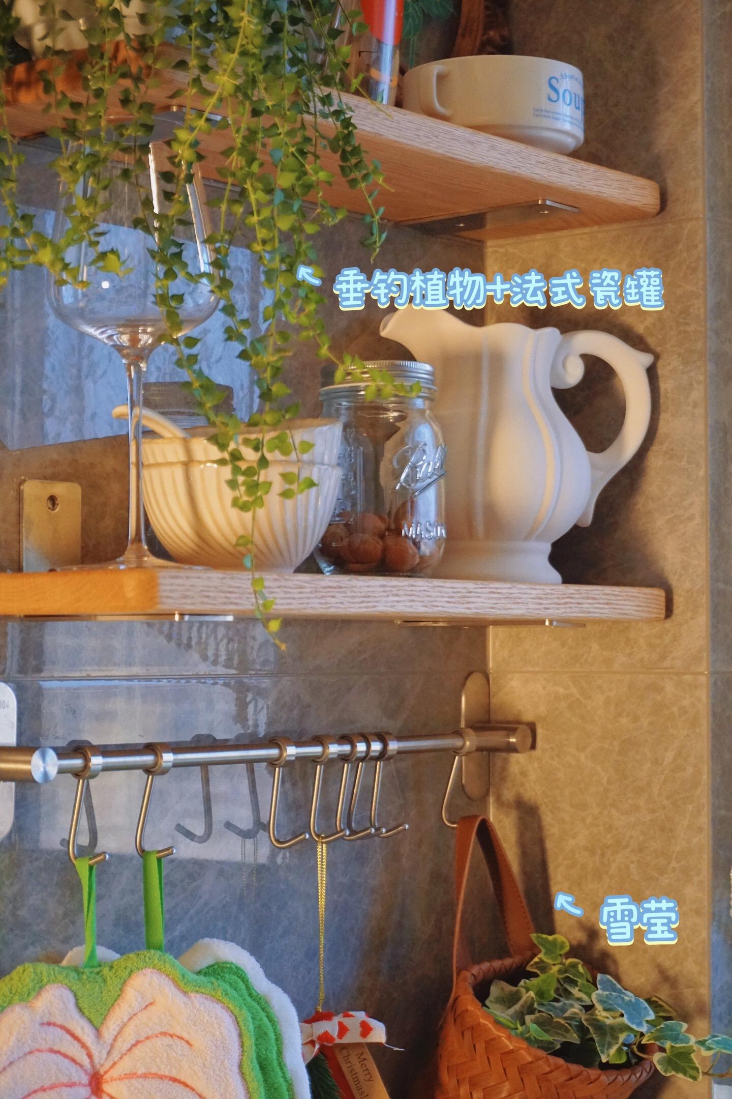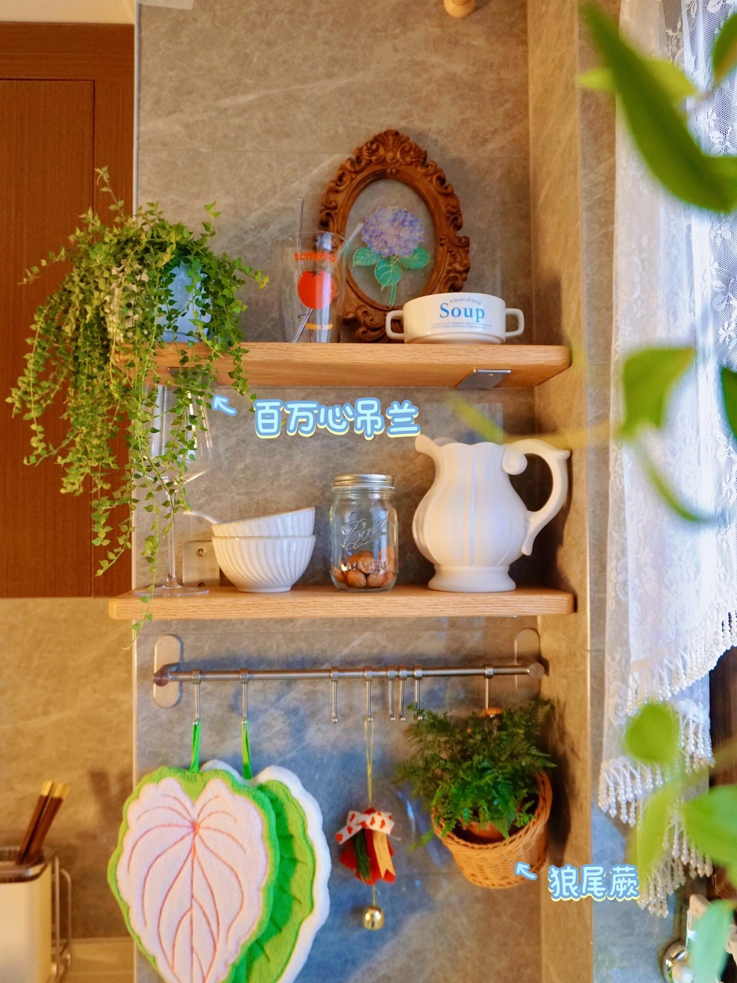 我的厨房氛围神器非“绿植”莫属。绿植一直都是一个空间的氛围神器 是点睛之笔 如果养不好绿植 是不是也可以有办法给空间增添活力呢 比如一些绿植挂画 仿真花 绿植钟表、摆件 绿植的擦手巾也是不错的选择呢 实用和颜值兼具 ·厨房绿植几种氛围搭配 垂吊类绿植➕纱帘 置物隔板➕垂吊类绿植 绿植➕法式瓷罐 垂吊类绿植➕实木复古吊灯