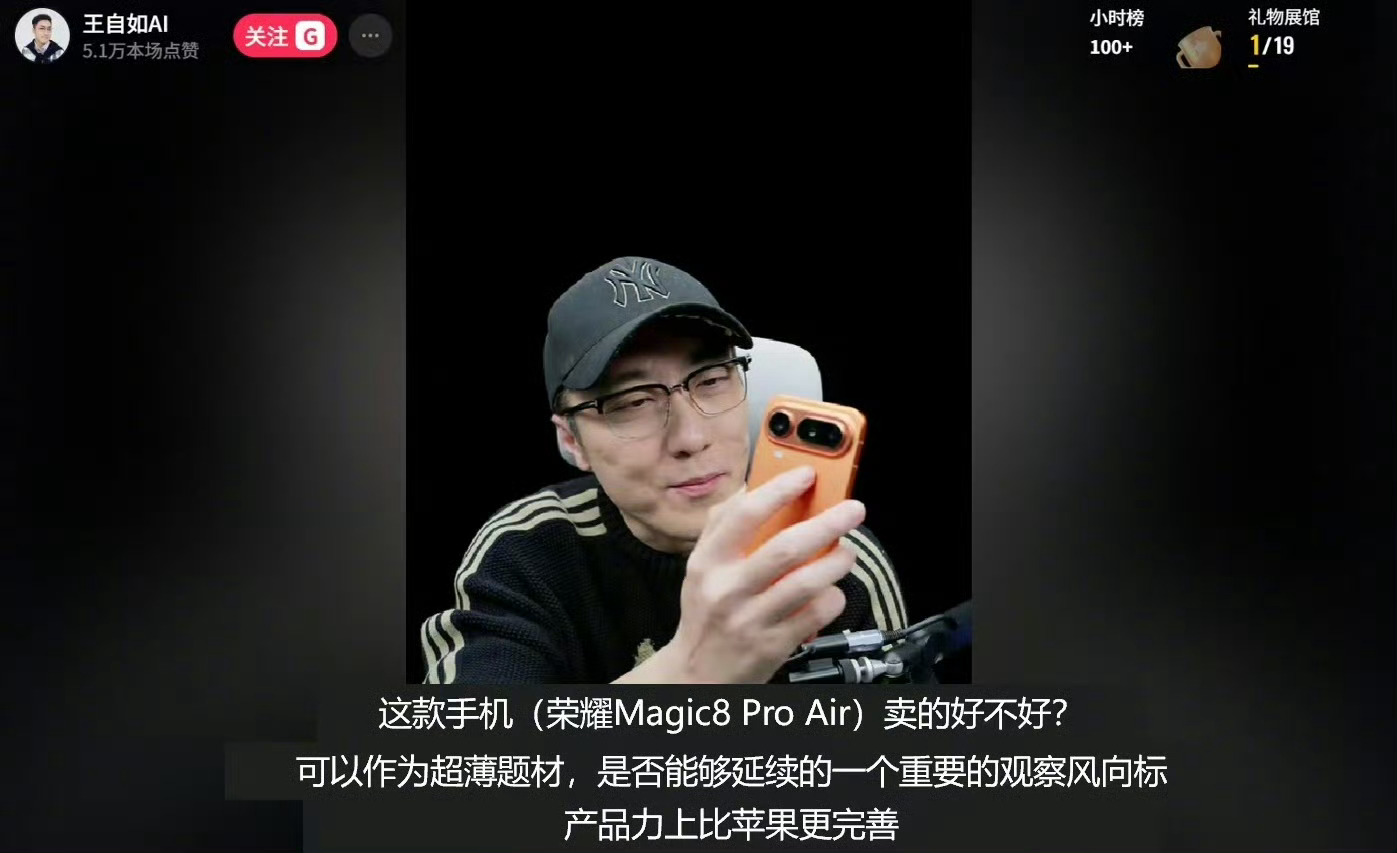 王自如说荣耀Air补齐iPhoneAir短板1月13日晚王自如直播那叫一个精彩!曾经他口出狂言“国产安卓做不好Air”,结果这次直播对比iPhone Air和荣耀Magic8 Pro Air后,直接被狠狠“打脸”。荣耀magic8 pro air 太争气了,摄像头、单扬声器、eSIM支持这些短板全给补齐了,实力直接拉满!王自如都夸它有清晰的“产品力取向”和正向研发思路。要是市场表现好,超薄手机市场必将掀起热潮~