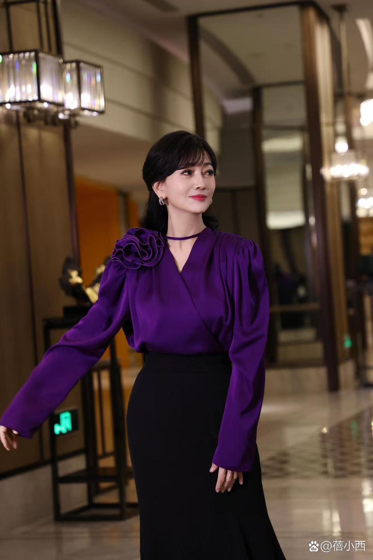 赵雅芝的老年穿搭真高级!紫色上衣+黑色鱼尾裙,优雅又大气!
