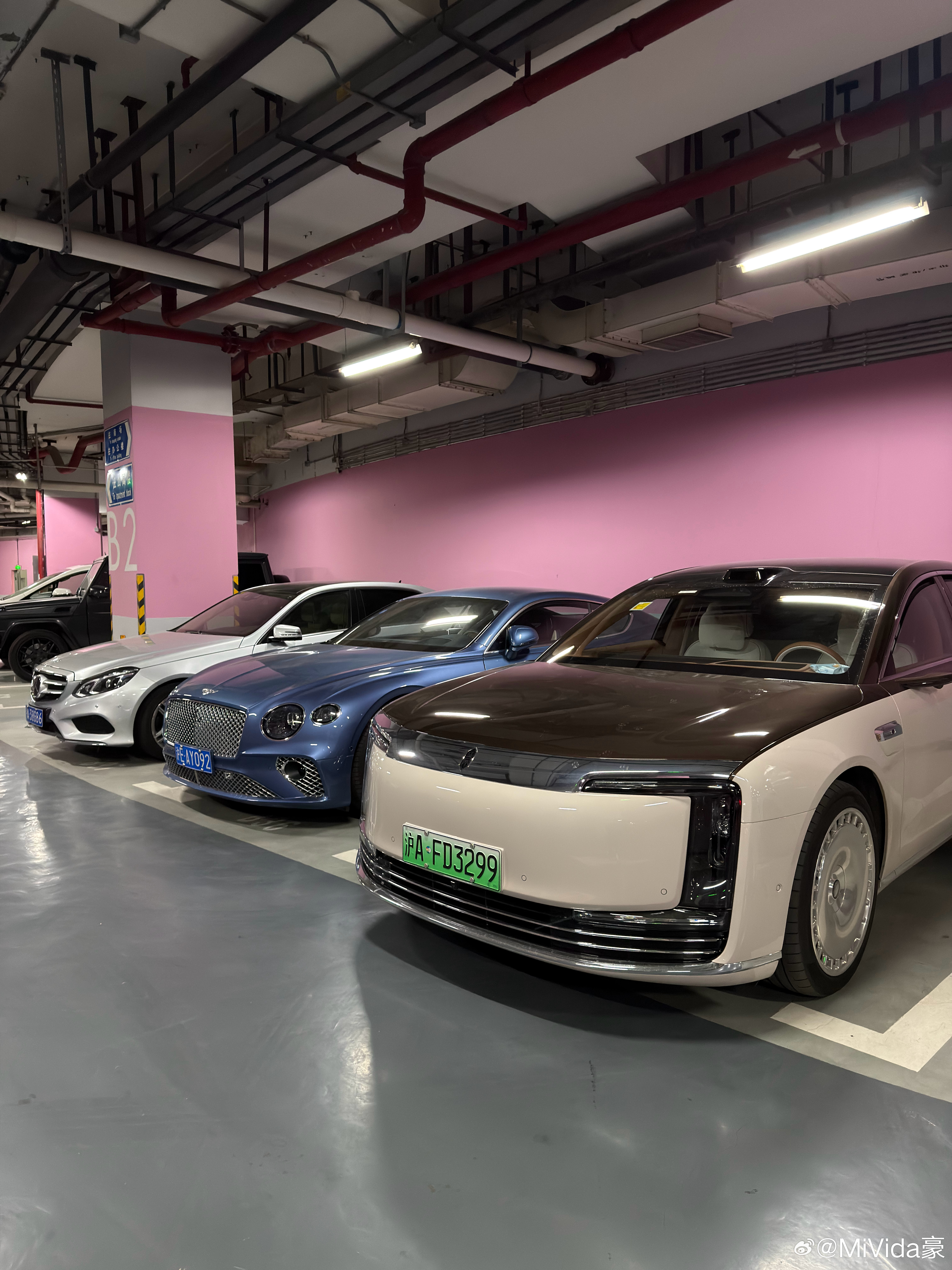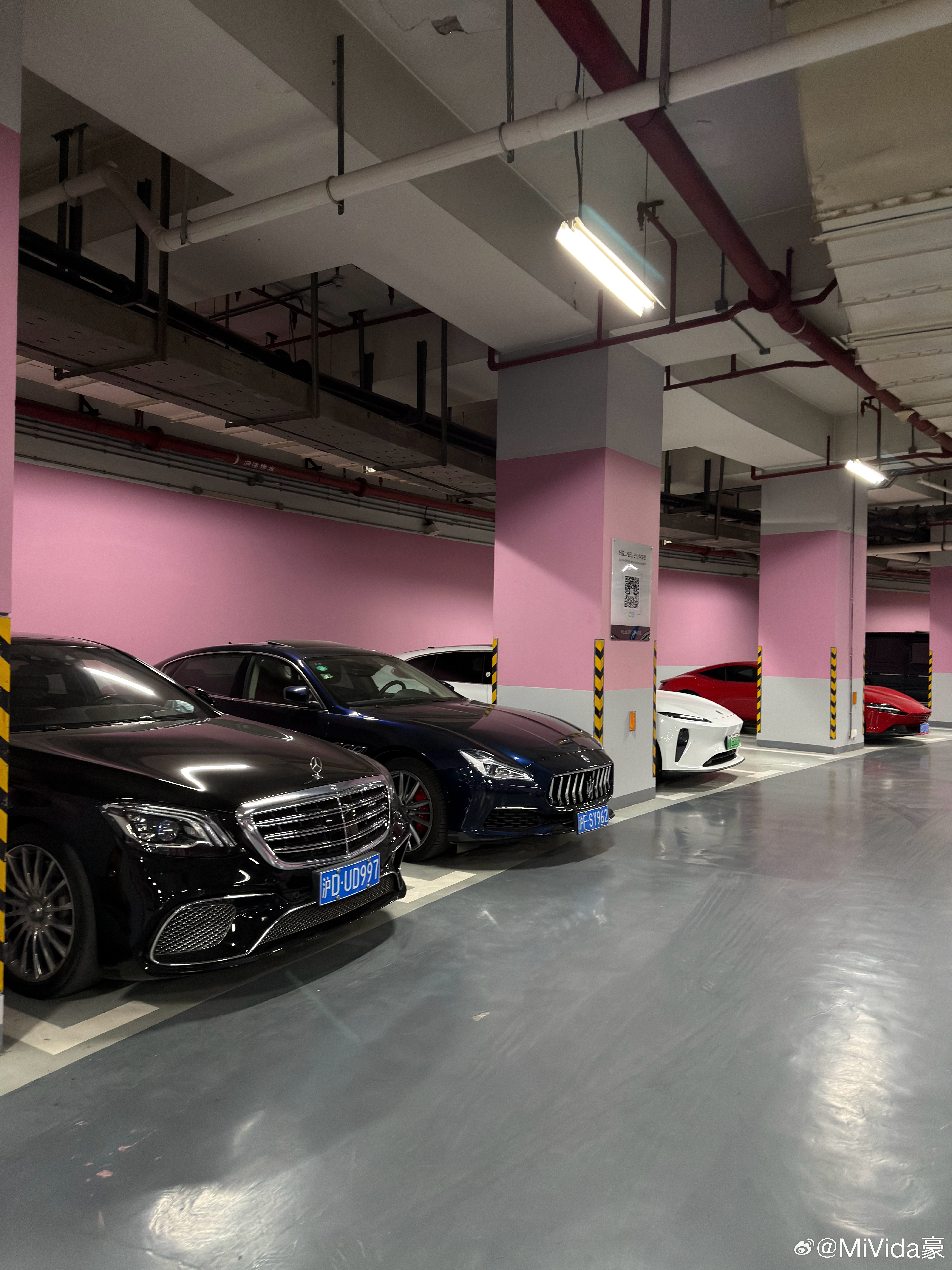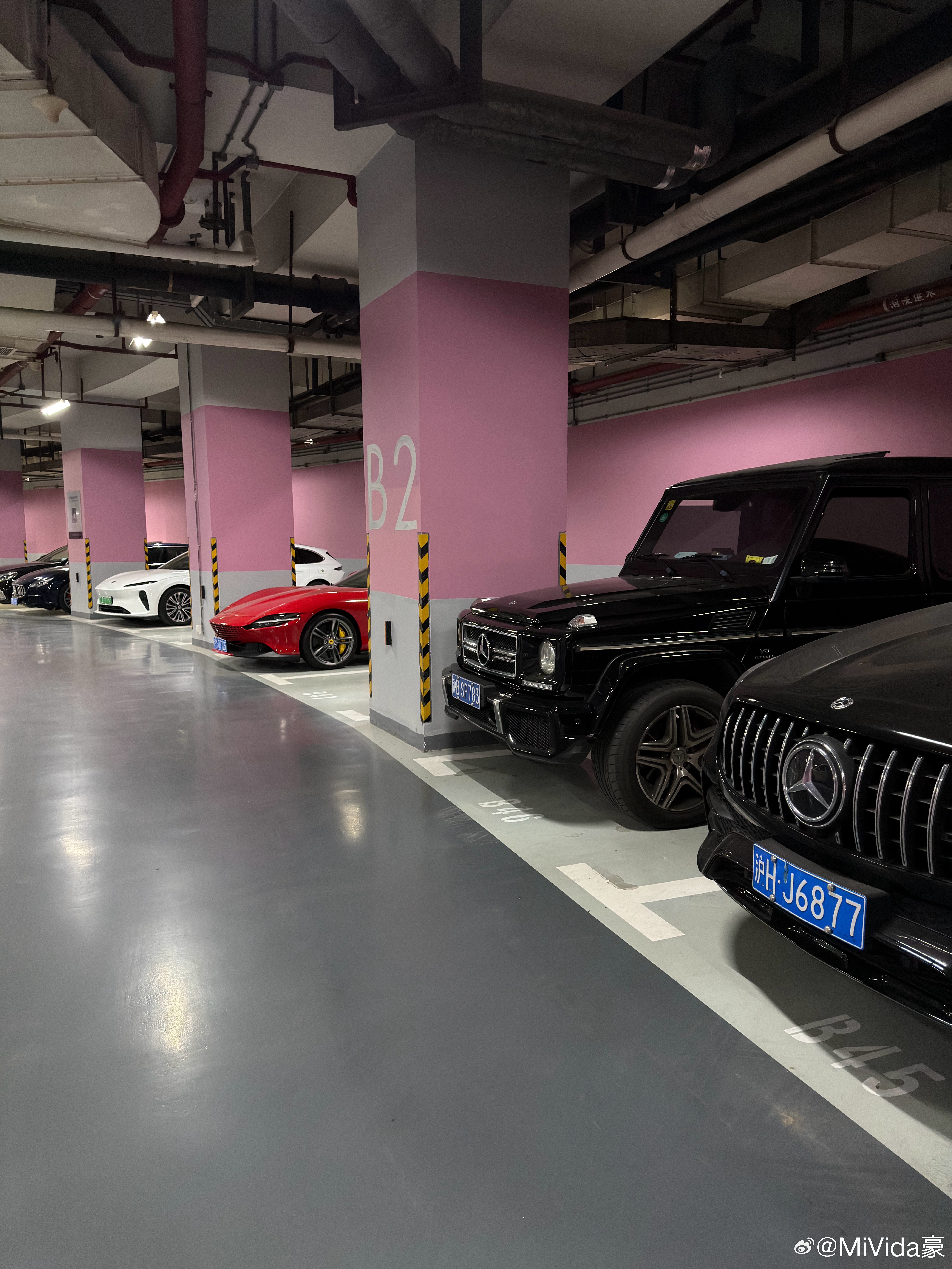 很喜欢的粉色停车场 奔驰AMG含量很高V12的 S65AMG和V 12 G65AMG也是没谁了