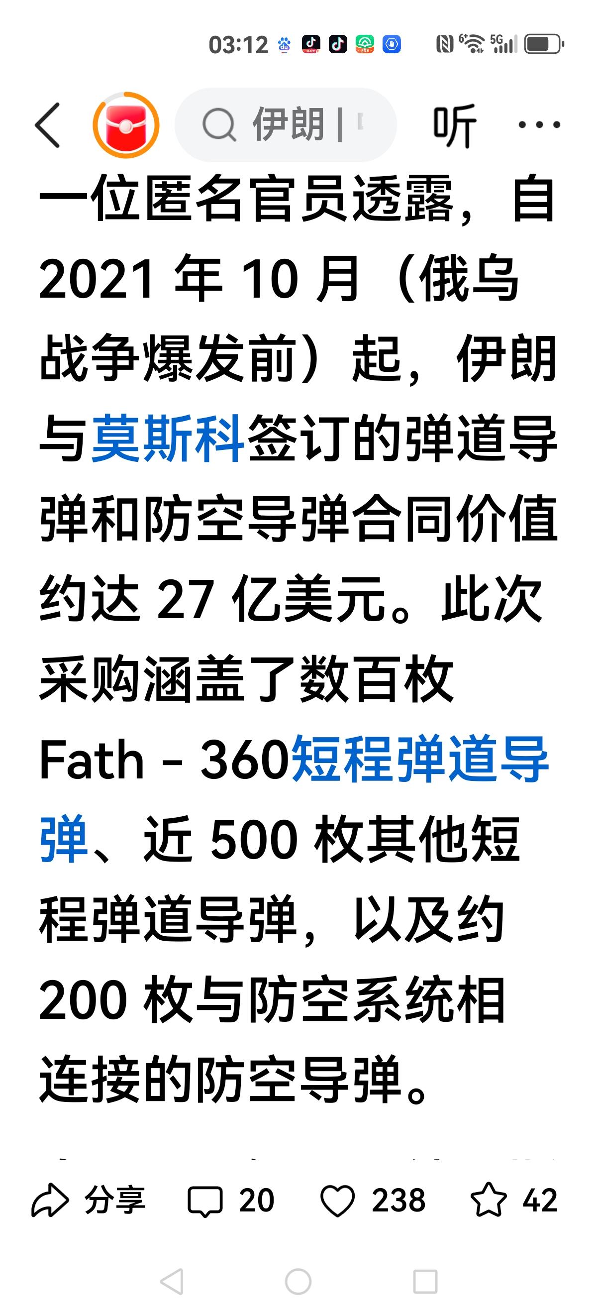【伊朗又向俄罗斯出售27亿的导弹】 出售武器并不稀奇,关键是出售武器的27亿,用