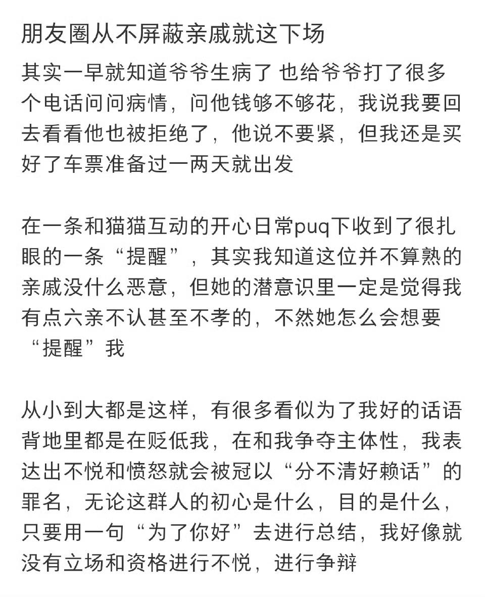 网友抱怨,这就是发朋友圈不屏蔽亲戚的下场!有些人确实不懂事,在别人朋友圈底下发评