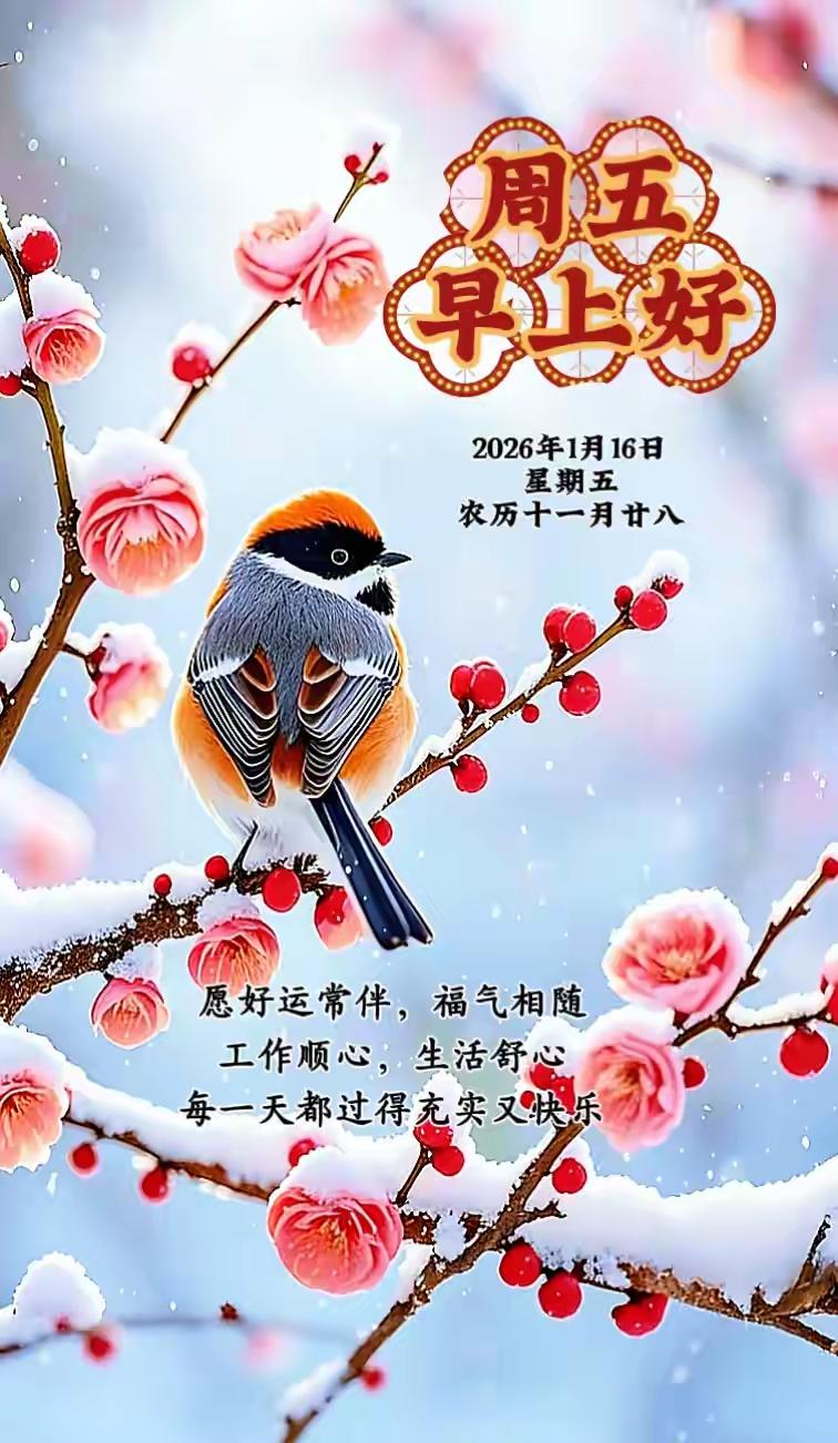 2026年1月16日,周五早上好!愿我们事事顺遂如意!平安喜乐、幸福安康、开心快