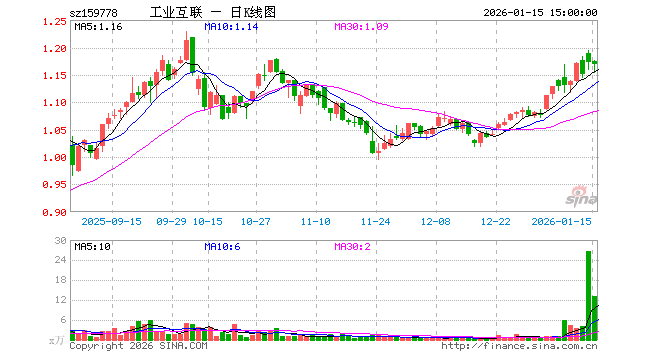 1月15日,工业互联网ETF鹏华(159778)跌0.34%,成交额1536.28万元。当日份额增加300.00万份,最新份额为8075.54万份,近20个交易日份额增加2250.00万份。最新资产净值计算值为9450.80万元。