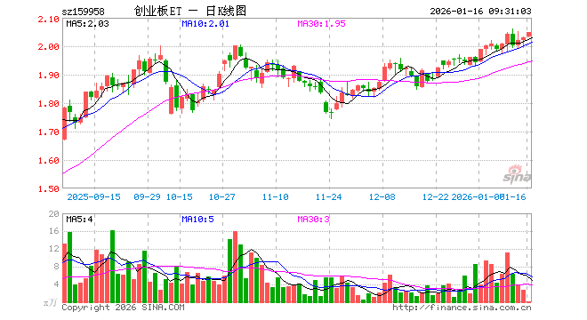 1月16日,创业板ETF工银(159958)开盘涨0.10%,报2.032元。创业板ETF工银(159958)重仓股方面,宁德时代开盘涨1.20%,中际旭创涨1.75%,东方财富涨0.96%,新易盛涨2.53%,阳光电源涨1.44%,胜宏科技涨1.04%,汇川技术涨0.41%,迈瑞医疗涨0.21%,亿纬锂能涨0.53%,温氏股份跌0.18%。