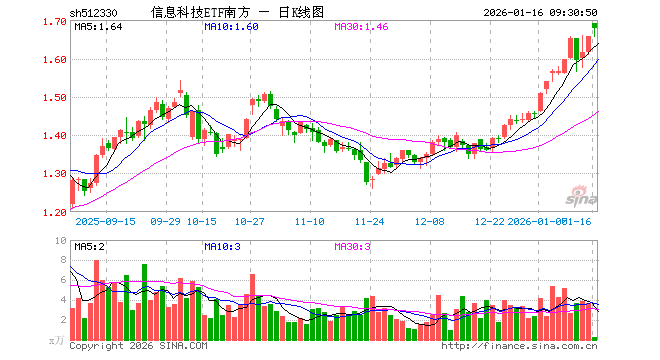 1月16日,信息科技ETF南方(512330)开盘涨2.11%,报1.691元。信息科技ETF南方(512330)重仓股方面,胜宏科技开盘涨1.04%,华工科技涨1.01%,芯原股份跌0.25%,指南针涨1.53%,通富微电涨2.00%,润和软件跌2.18%,瑞芯微涨1.30%,长川科技涨0.07%,协创数据涨0.71%,华海清科涨1.94%。