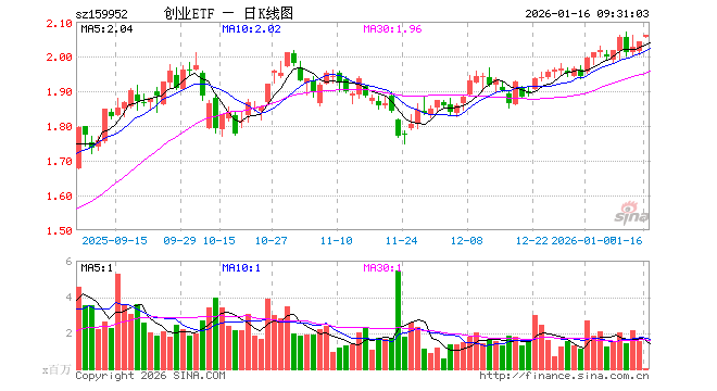 1月16日,创业板ETF广发(159952)开盘涨0.73%,报2.056元。创业板ETF广发(159952)重仓股方面,宁德时代开盘涨1.20%,中际旭创涨1.75%,东方财富涨0.96%,新易盛涨2.53%,阳光电源涨1.44%,胜宏科技涨1.04%,汇川技术涨0.41%,迈瑞医疗涨0.21%,亿纬锂能涨0.53%,温氏股份跌0.18%。