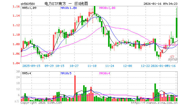 1月16日,电力ETF南方(560580)开盘涨5.00%,报1.135元。电力ETF南方(560580)重仓股方面,长江电力开盘涨0.22%,中国核电涨0.11%,三峡能源涨0.24%,国电电力涨0.41%,永泰能源涨0.61%,国投电力涨0.68%,华能国际涨0.54%,上海电力涨2.05%,中国广核涨0.26%,川投能源涨0.22%。