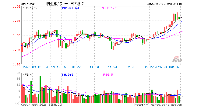 1月16日,创业板综ETF万家(159541)开盘涨0.74%,报1.624元。创业板综ETF万家(159541)重仓股方面,宁德时代开盘涨1.20%,中际旭创涨1.75%,东方财富涨0.96%,新易盛涨2.53%,迈瑞医疗涨0.21%,阳光电源涨1.44%,胜宏科技涨1.04%,汇川技术涨0.41%,蓝思科技涨0.49%,亿纬锂能涨0.53%。