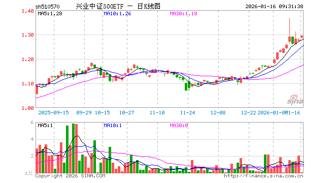 1月16日,兴业中证500ETF(510570)开盘涨0.63%,报1.286元。兴业中证500ETF(510570)重仓股方面,胜宏科技开盘涨1.04%,华工科技涨1.01%,瑞芯微涨1.30%,芯原股份跌0.25%,协创数据涨0.71%,百济神州跌0.36%,科达利涨0.83%,指南针涨1.53%,巨人网络涨0.02%,恒玄科技涨0.16%。