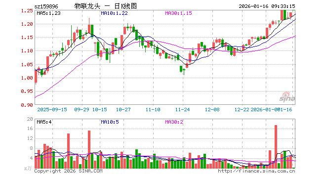 1月16日,物联网ETF南方(159896)开盘涨0.81%,报1.250元。物联网ETF南方(159896)重仓股方面,中际旭创开盘涨1.75%,立讯精密涨1.59%,汇川技术涨0.41%,中兴通讯涨0.40%,兆易创新涨1.99%,豪威集团涨0.82%,科大讯飞跌2.92%,海康威视涨0.42%,美的集团涨0.04%,海尔智家涨0.35%。