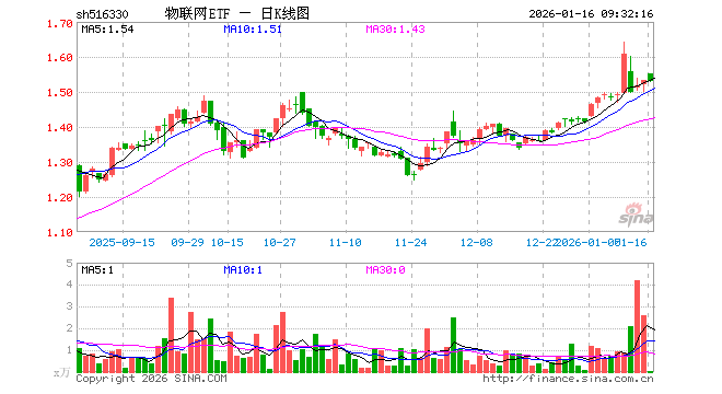 1月16日,物联网ETF(516330)开盘涨1.31%,报1.552元。物联网ETF(516330)重仓股方面,中际旭创开盘涨1.75%,立讯精密涨1.59%,汇川技术涨0.41%,中兴通讯涨0.40%,兆易创新涨1.99%,豪威集团涨0.82%,海康威视涨0.42%,科大讯飞跌2.92%,美的集团涨0.04%,华工科技涨1.01%。