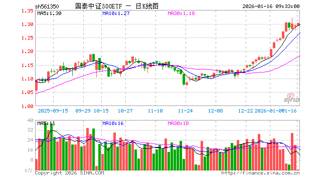 1月16日,国泰中证500ETF(561350)开盘涨0.00%,报1.292元。国泰中证500ETF(561350)重仓股方面,胜宏科技开盘涨1.04%,华工科技涨1.01%,芯原股份跌0.25%,先导智能涨1.24%,中国化学涨0.38%,巨人网络涨0.02%,指南针涨1.53%,卧龙电驱涨0.89%,欣旺达涨1.20%,赤峰黄金跌1.31%。