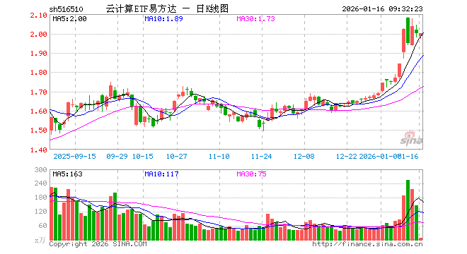1月16日,云计算ETF易方达(516510)开盘跌0.65%,报1.985元。云计算ETF易方达(516510)重仓股方面,中际旭创开盘涨1.75%,新易盛涨2.53%,科大讯飞跌2.92%,中科曙光涨0.93%,浪潮信息涨0.84%,金山办公跌0.92%,紫光股份涨1.15%,恒生电子跌0.55%,润和软件跌2.18%,拓维信息跌1.73%。