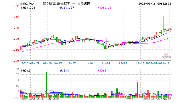 500质量成长ETF(560500)业绩比较基准为中证500质量成长指数收益率,管理人为鹏扬基金管理有限公司,基金经理为施红俊,成立(2021-08-04)以来回报为28.56%,近一个月回报为10.03%。