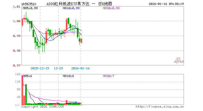 A500红利低波ETF易方达(563510)业绩比较基准为中证A500红利低波动指数收益率,管理人为易方达基金管理有限公司,基金经理为张泽峰,成立(2025-11-17)以来回报为-1.59%,近一个月回报为-0.27%。