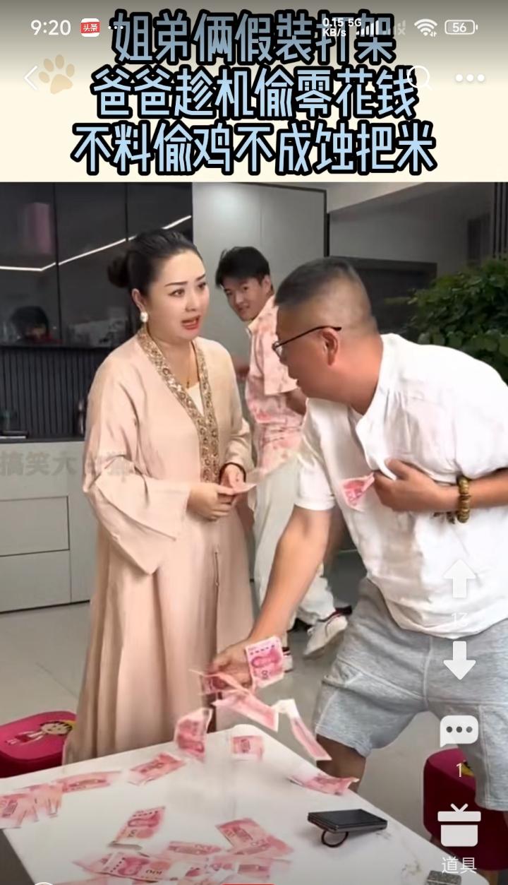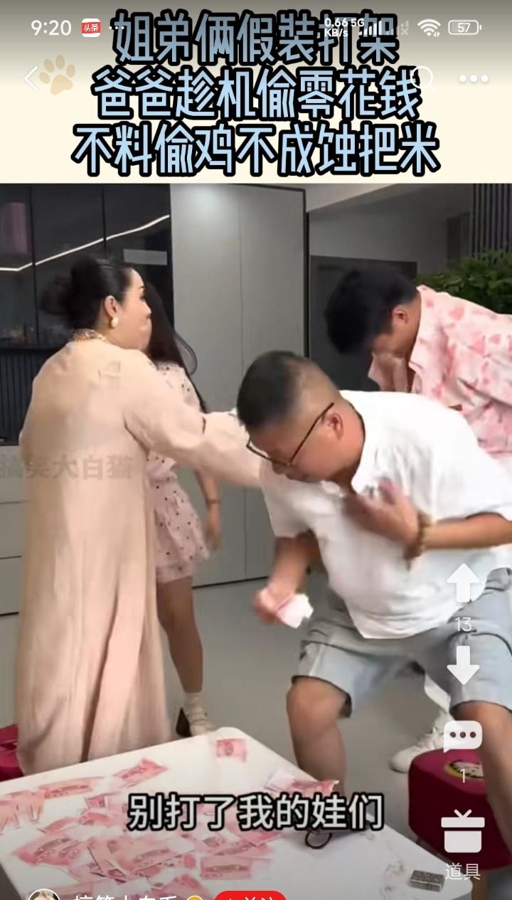 到底还是家贼难防。 老妈子在数着钞票。 两兄妹不怀好意的在一旁打了起来。 老妈子赶忙起来劝阻,被儿子趁机顺走了几张大钞。 在一旁看着大妈点钞的大叔,也趁着此良机私捞,谁知却被大妈发现了,抓了一个现场。 正是螳螂捕蝉,黄雀在后。 这下大叔有口也说不清了。 必须赔,一张不少的全赔。