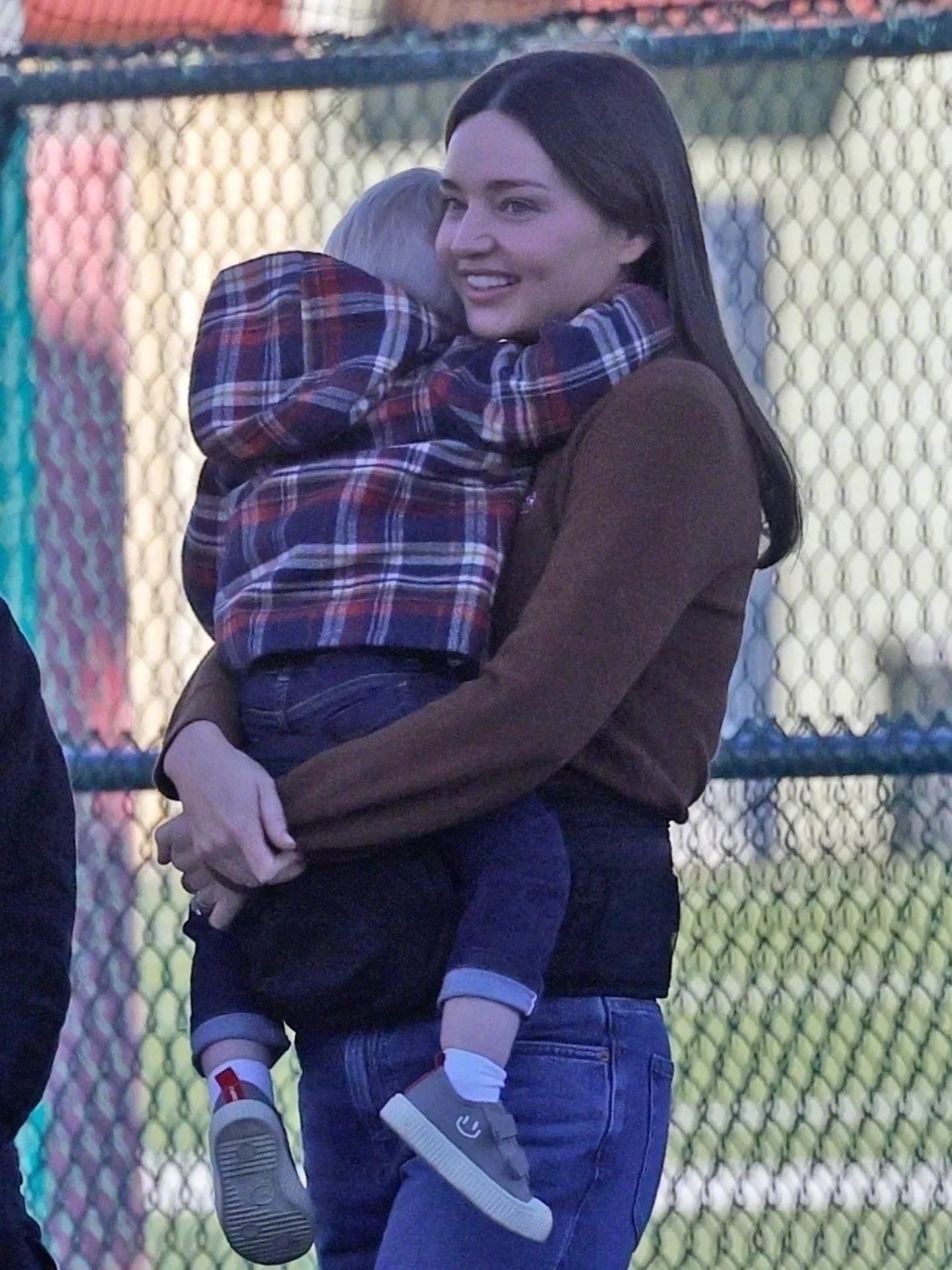 米兰达可儿抱着小儿子-也就是第四个儿子Pierre 和妈妈 Therese 在洛杉矶外出被拍。这个儿子似乎也还是像爸爸!