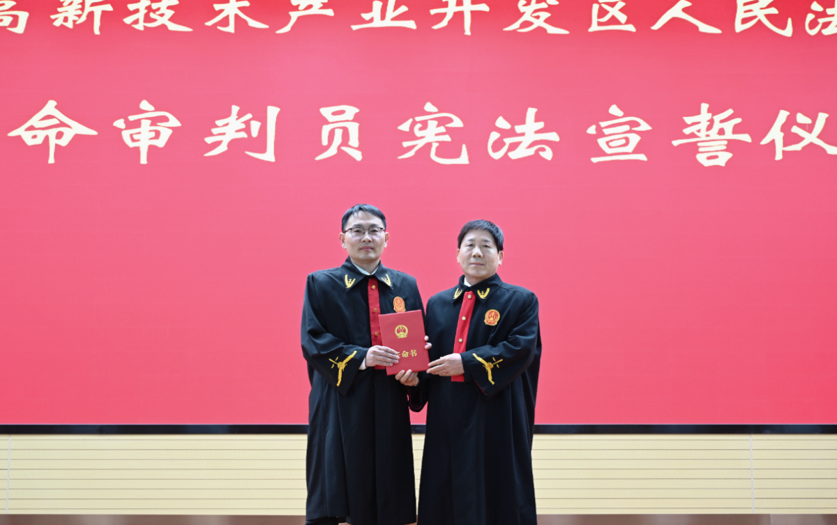 法袍见证责任,法徽映照使命。为进一步增强新任命审判员的责任感、使命感和荣誉感,激励其在新岗位上忠诚履职、廉洁担当,1月14日,南阳高新区法院举办新任命审判员宪法宣誓仪式。