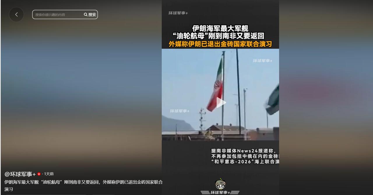 伊朗大概率要打了!伊朗已经紧急退出“金砖军演”,伊朗军舰将返回中东地区。美军的目标很可能,就是伊朗12万吨级“航母”。打击伊朗12万吨级“航母”,避免打击伊朗本土,引发战争升级。 1月初,南非筹备了一场名为“和平意志2026”的多国海军联合演习,好几个国家的军舰都陆续靠港了。 伊朗海军这次为了要在国际上露个脸,可是下了血本,把家底子都掏出来了,直接派出了那艘排水量足足有12万吨的“马克兰”号前置基地船。 这船一进港,那个头就把周围的护卫舰比下去了,毕竟它是用超级油轮改造的,甲板上停满了直升机和准备随时起飞的无人机。 伊朗本来指望着借这次金砖国家和伙伴们的聚会,向全世界证明自己不仅能守住波斯湾,还能跑这么远到大西洋来执行任务。 可演习还没正式进入海上实操,南非方面非常突然地找上门,跟伊朗代表团交了底,说接下来的演习你们不能作为正式参与方了,只能改个观察员的身份在旁边看着。 这事儿出得挺蹊跷,好端端的计划说改就改,但这背后其实全是无奈。明眼人都看出来了,这根本不是南非想给自己找麻烦,而是被美国掐住了经济命脉。 特朗普政府那边早就放出了风声,手里攥着关税这张大牌,特别是针对非洲国家的免税贸易待遇。 要是南非敢让伊朗的军舰在这片海域大张旗鼓地搞演习,美国反手就能加征关税,甚至把南非踢出贸易优惠名单。为了保住国内的经济饭碗,南非只能硬着头皮劝退了伊朗。 伊朗那边的反应倒是出奇地快,一点都没拖泥带水。接到通知后,马克兰号连同护航的军舰,掉转船头就开始往回跑。 这一撤不仅仅是因为面子上挂不住,更多的是因为伊朗敏锐地嗅到了空气里的火药味。 在中东那个复杂的环境里摸爬滚打这么多年,他们太清楚这种政治风向转变意味着什么了。 既然演习搞不成了,这艘孤零零飘在万里之外的巨舰,瞬间就从展示实力的招牌,变成了最容易挨打的靶子。 现在最要紧的已经不是争那口气了,而是得赶紧把这12万吨的大家伙安安全全地带回波斯湾去,毕竟离家太远,谁也不知道半路上会发生什么。 但这回家的路,恐怕没那么好走。美军在中东和非洲周边的眼睛一直盯着这一举一动呢。对于美国来说,眼下可能出现了一个千载难逢的机会。 美国现在想教训伊朗,压压它的势头,但又不想真把事情闹大。 如果直接往伊朗本土扔导弹,那性质就变了,那是宣战,伊朗肯定会疯狂报复,到时候以色列、周边的美军基地全得遭殃,全球石油价格也得飞上天,这个代价太大,美国人不愿意付。 但如果在公海上,把这艘马克兰号给“意外”处理掉,那情况可就完全不一样了。 为什么说打马克兰号最划算?因为这船看着体型巨大,吓人得很,其实特别脆弱。它本质上就是艘民用油轮刷了层漆,加了点起降平台。 它没有正规航母那种里三层外三层的防空导弹系统,也没有一群驱逐舰给它当保镖提供区域防空保护。 在美军的隐身战机或者远程巡航导弹面前,它就像个没有穿盔甲的巨人,行动缓慢,目标巨大,几乎没有什么还手的能力。 把它打掉既能狠狠地羞辱伊朗,告诉全世界伊朗所谓的远洋海军根本不堪一击,又因为没打到伊朗本土,不至于让局势瞬间失控到引发全面战争的地步。 这是一种非常阴险但战略上极具诱惑力的“有限战争”手段。 现在伊朗的舰队正开足马力往家里赶,试图尽快回到岸基导弹和空军能支援的保护圈里;而美军的枪口可能已经在瞄准了,正在评估动手的收益和风险。 一旦美军真的决定为了立威而按下发射按钮,那中东这锅本来就滚烫的油,怕是又要彻底炸开锅了。 信息来源:环球军事+