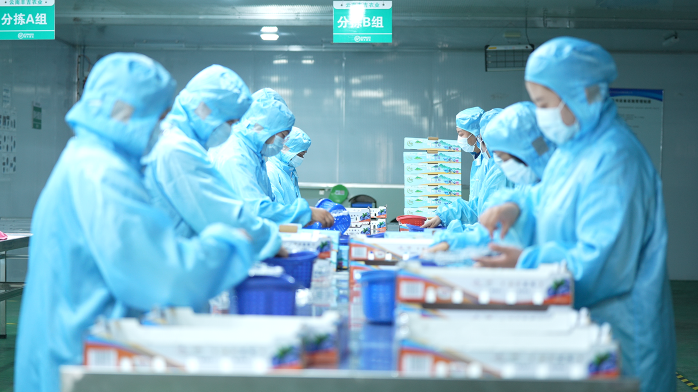 蓝莓分拣。澄江市融媒体中心杨洪龙摄