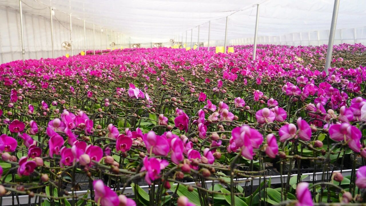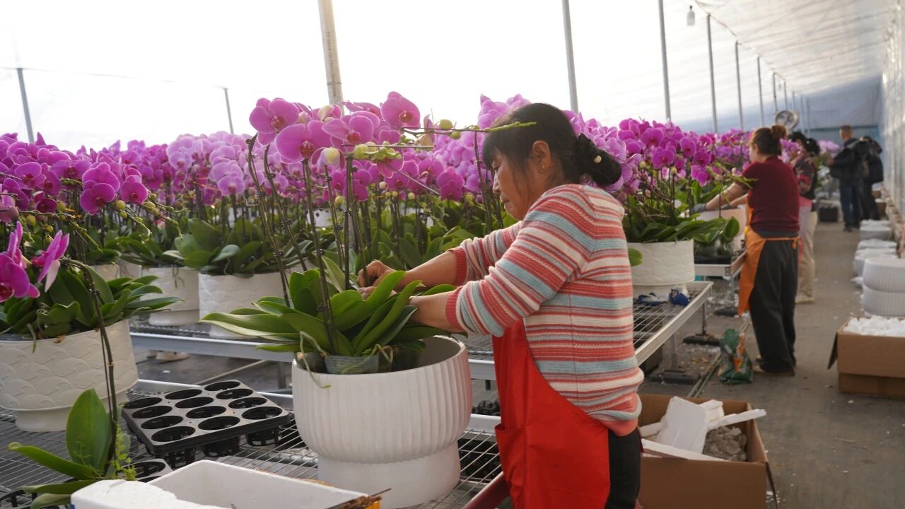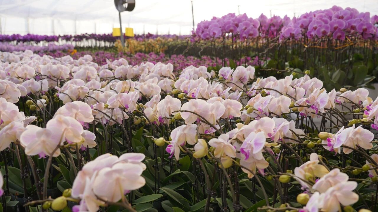 最引人瞩目的当属蝴蝶兰智能种植棚,4万余株蝴蝶兰在恒温恒湿的环境中优雅绽放,涵盖50余个品种。棚内自动通风换气系统与粘虫设备各司其职,无需过多人工干预便能维持最佳生长环境,这正是智慧农业赋能花卉种植的生动体现。