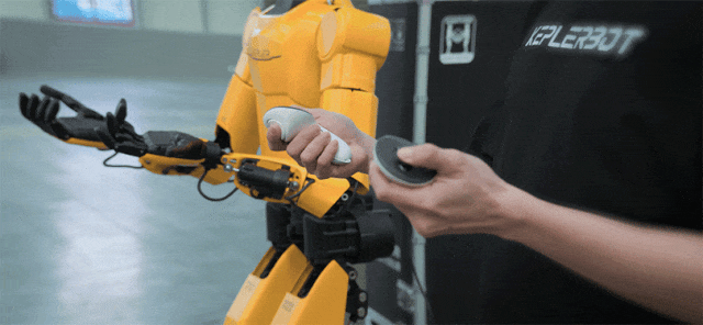 开普勒宣布自研沉浸式全身遥操系统,融合动作捕捉、低时延通信、力反馈等多技术,实现人类对机器人远程1:1全身控制技术。当操作员通过遥操设备做出动作,30公斤级双臂负载的K2大黄蜂能在高空中同步响应;当焊接器械遇到阻力,力反馈系统实时传递压力感;当焊缝出现火花飞溅,VR头显同步呈现第一视角画面。