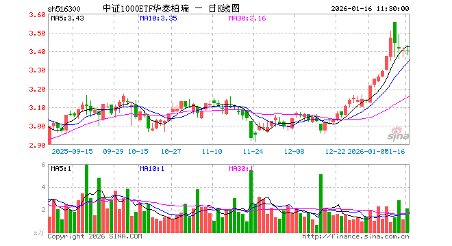 1月16日,截止午间收盘,中证1000ETF华泰柏瑞(516300)跌0.26%,报3.397元,成交额710.60万元。中证1000ETF华泰柏瑞(516300)重仓股方面,安集科技截止午盘涨2.25%,和而泰涨2.03%,华虹公司涨1.67%,欧菲光跌1.26%,源杰科技跌0.68%,东芯股份涨1.92%,银轮股份涨2.03%,方正科技跌1.11%,乐鑫科技涨0.31%,香农芯创涨5.12%。