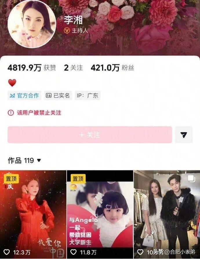 李湘全平台账号被禁止关注刚刷到大瓜!李湘的微博、抖音、小红书账号全被标注“禁止关