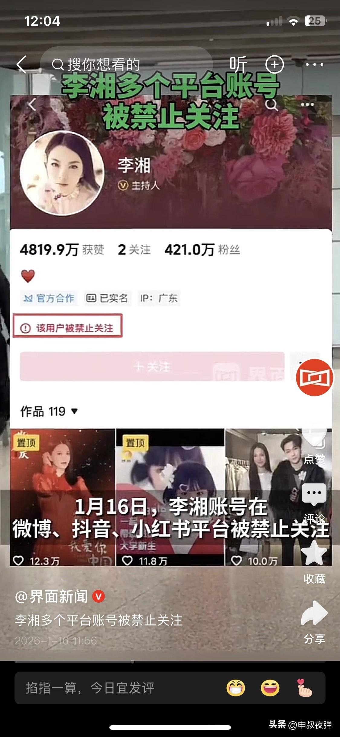 李湘被网络封杀是没啥奇怪的。感觉一个人价值观扭曲后,精神空虚,只有金钱和享受炫耀