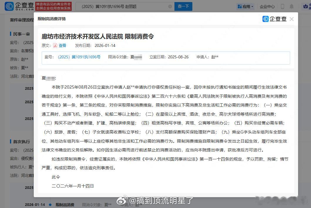 恭喜赵丽颖告黑成功,黑粉被判赔偿8W+,因未按期履行给付义务,赵丽颖申请对其限制