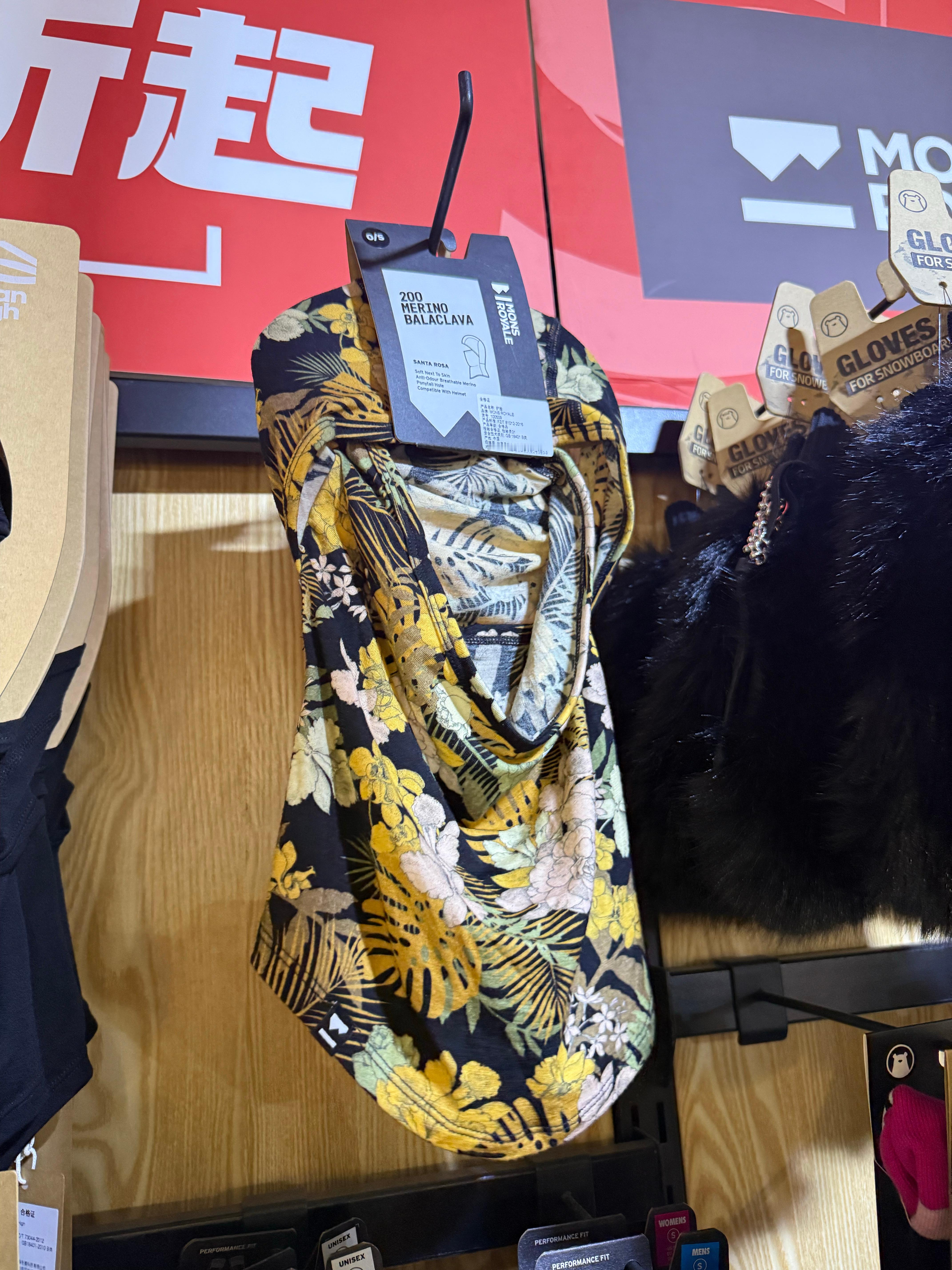 逛雪具店看到的新装备,必须跟大家分享下,这个毛手套也太像“熊掌”了吧,还有一个夏日度假迷彩护脸面罩卷妹的唠嗑