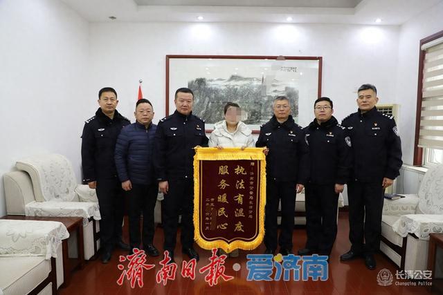 1月14日,市民王女士将一面写有“执法有温度服务暖民心”的锦旗送到长清公安分局,感谢民警解决了困扰她二十余年的“无户”难题。