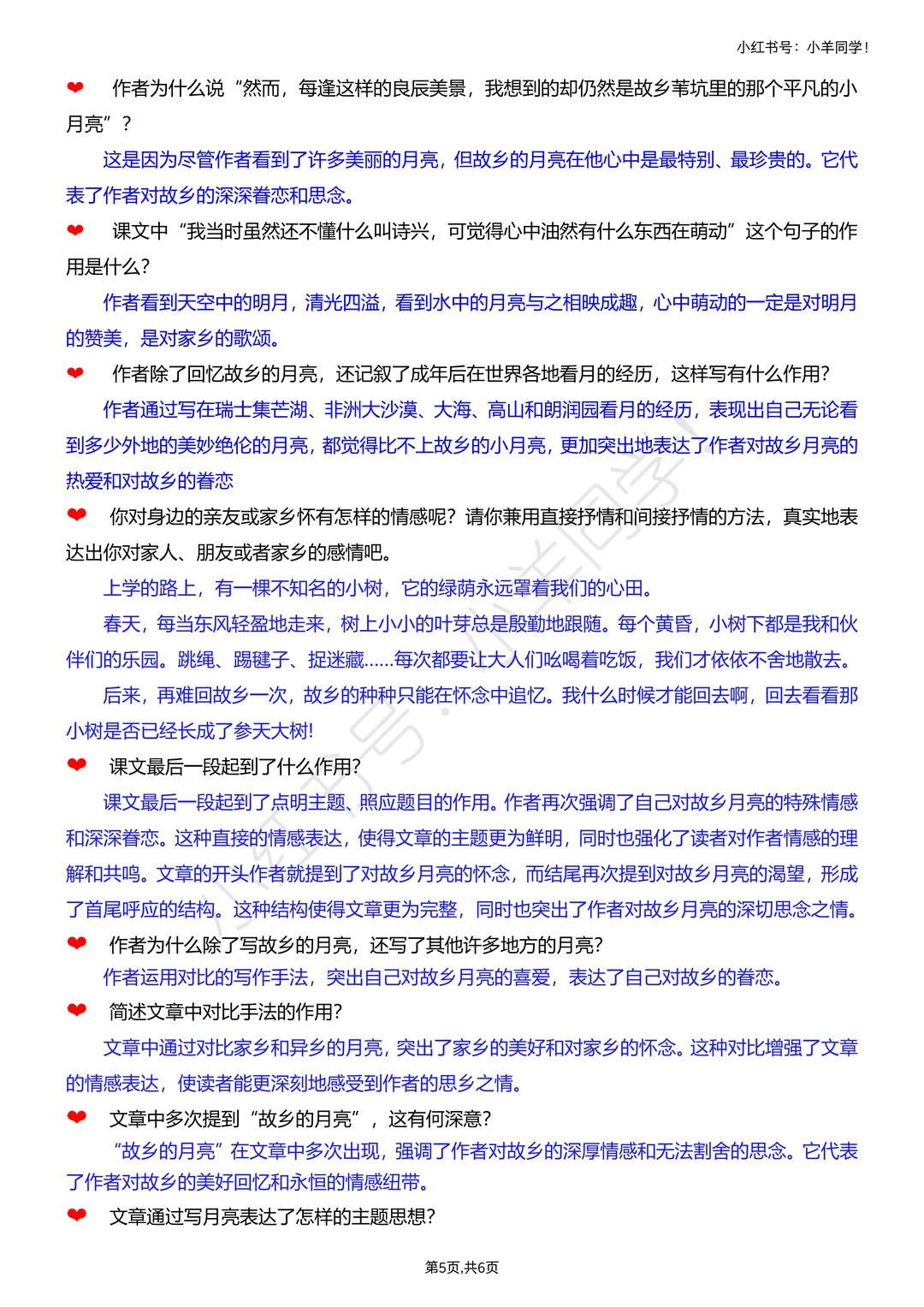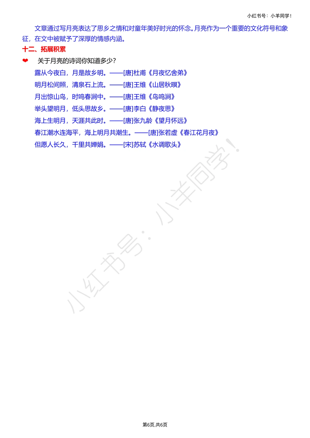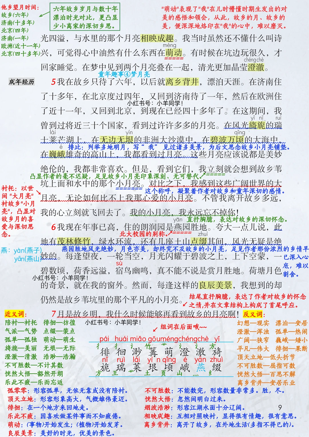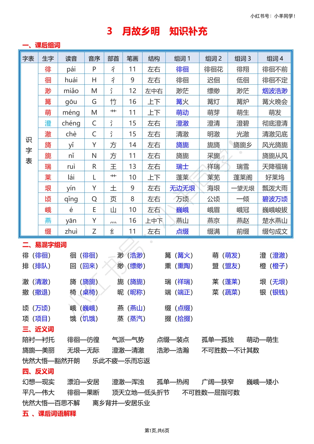 📚 五下语文第3课《月是故乡明》核心考点整理来啦!