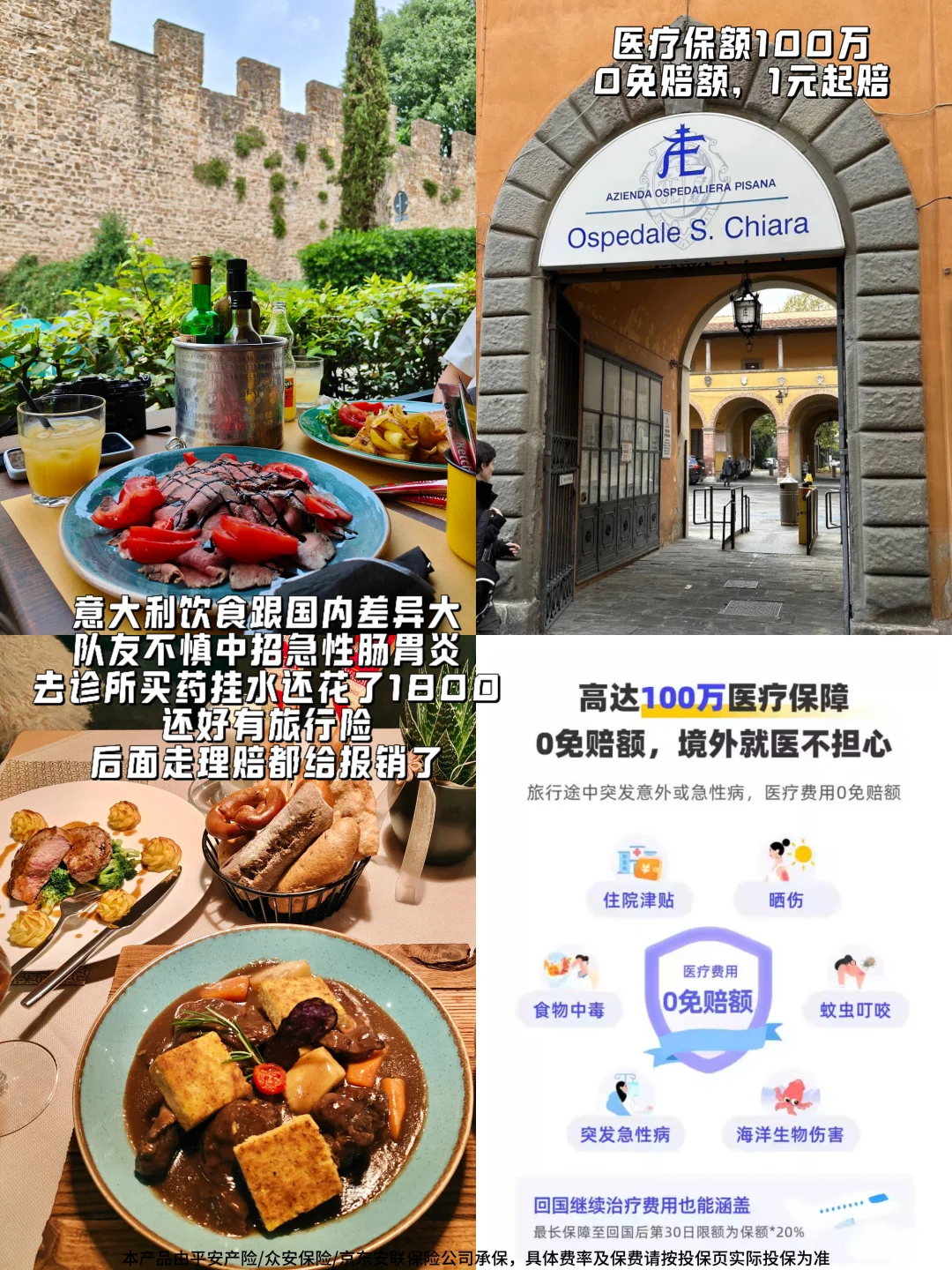 虽然意大利公立医疗对游客免费,但私立医院、药费、牙科等自费项目不菲。不管是大到食物中毒,还是小到感冒发烧、蚊虫叮咬,无忧保百万保额都能全额报销,万一需要看病,不用花自己的钱简直爽爽爽~
