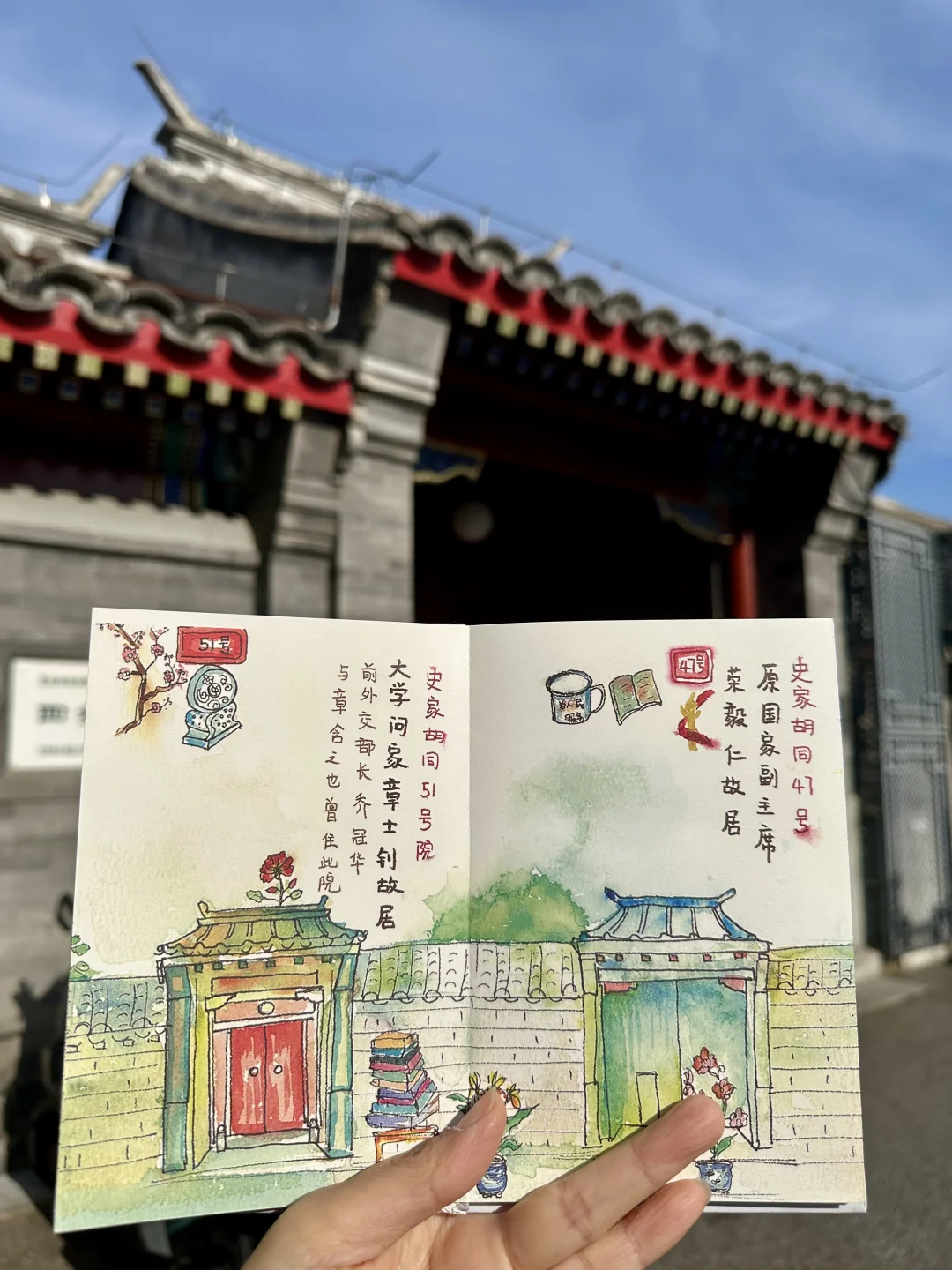 史家胡同藏着700年的故事,章士钊、凌叔华等名人曾居于此,还是北京人艺的诞生地。文创社的手绘长卷收录了26个名人院落,文旅手帐搭配印章直接把历史“装”进本子里,比逛博物馆还直观!