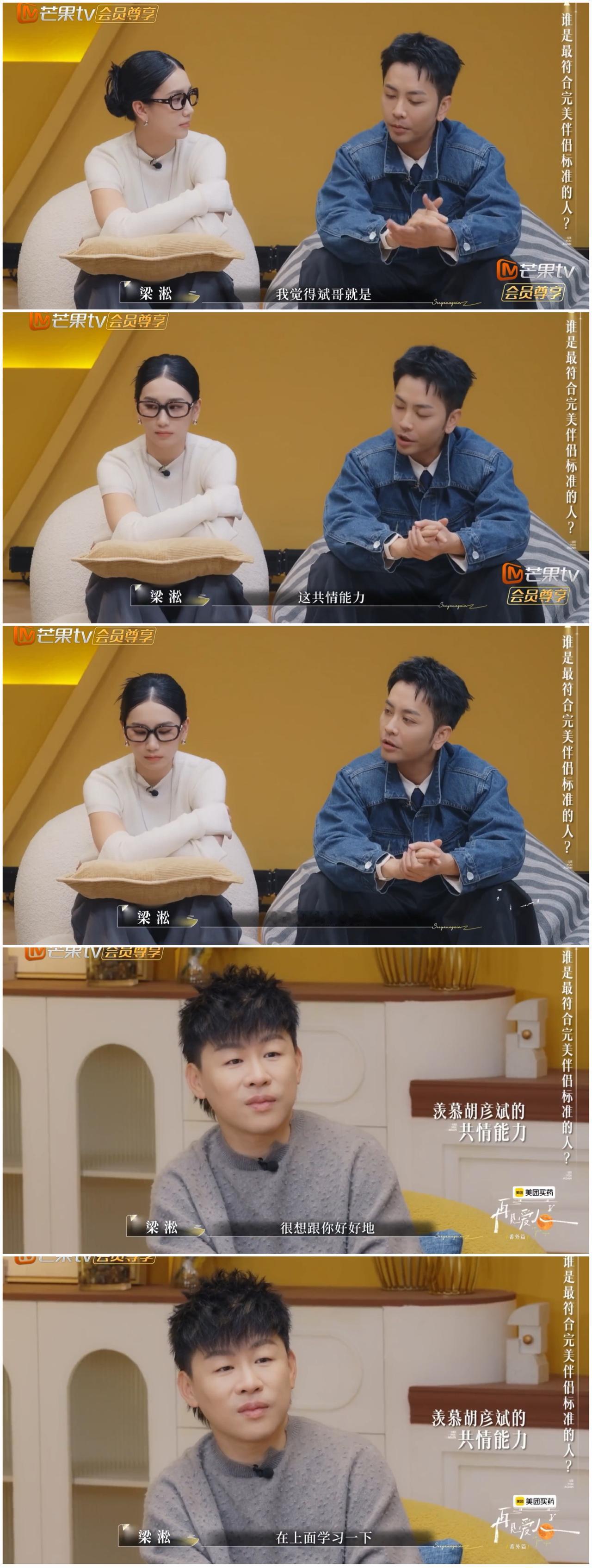 胡彦斌太“毒辣”, 连自己都不放过, 梁淞直接傻眼,李施嬅,何美延 都震惊了。 梁淞强调胡彦斌是最符合 完美伴侣标准的人。 理由是共情能力强, 梁淞坦言他连胡彦斌的十分之一 都无法做到。 胡彦斌面对梁淞的羡慕与认可。 他强调如果梁淞作为局外人看待别人感情时, 也可以像他一样能共情了。 暗指梁淞当局者迷。 是呀, 很多人在感情方面, 谈论别人都是头头是道, 但是到了自己身上, 却无法看清楚很简单的问题。 胡彦斌真的对于节目里的嘉宾感情, 评论得头头是道, 让人醍醐灌顶, 但是他自己还是多年单身。 最近才谈了一个女友, 网友多数不看好他们。 哎呀, 胡彦斌嘴太“毒”了, 连自己都不放过, 回怼梁淞, 强调自己不是能力强, 只是旁观者清。 他太清醒了, 知道自己的问题在哪里。
