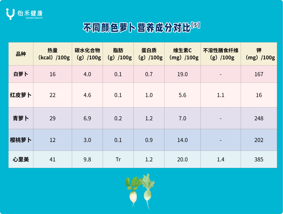 虽然它的维生素C含量较白萝卜低一些,但在其他营养成分上却颇具优势:例如莱菔素含量更高,莱菔素是评价萝卜品质和营养价值的重要指标之一,有抗炎抑菌的生物活性[1]。
