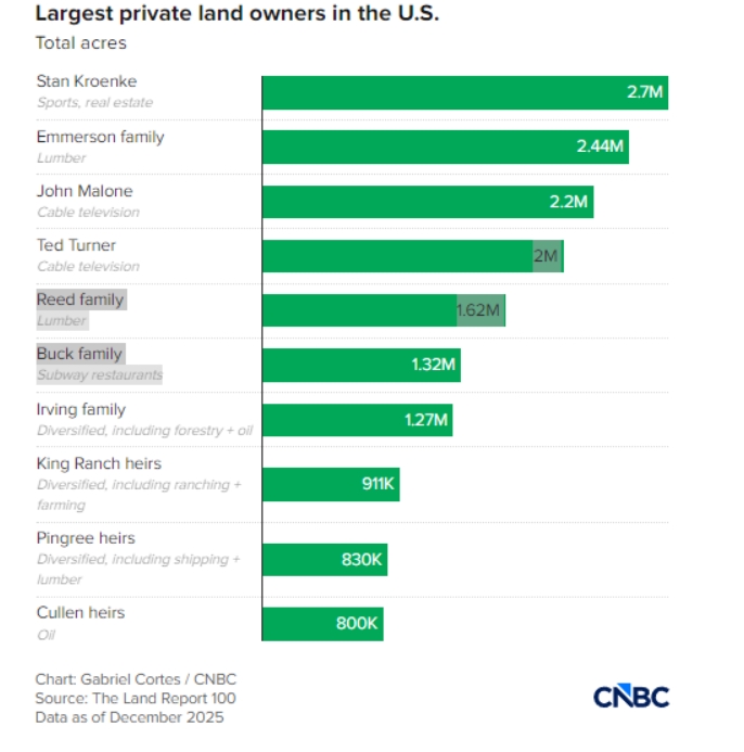 凭借这笔收购,克伦克在《土地报告》发布的“美国百大私人地主”年度榜单中,从第四名一跃升至榜首。