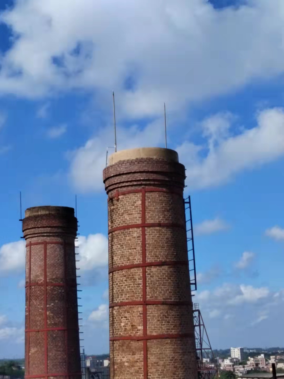 3.节点强化:烟囱顶部、爬梯连接处、避雷带周边,用毛刷细致涂刷,涂层厚度增加 20%;顶部设置滴水线,防止雨水沿壁流淌渗入砖体。