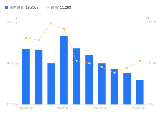 日期A股户数(户)流通A股户均持股数(股)户均持股市值(万元)2026-01-101880007247.158.182025-12-311930007059.407.792025-12-201960006951.357.532025-12-102000006812.327.532025-11-282060006613.907.412025-11-202110006457.187.302025-11-102200006193.027.762025-10-312000006812.328.692025-10-202100006361.187.702025-09-302104616347.257.74