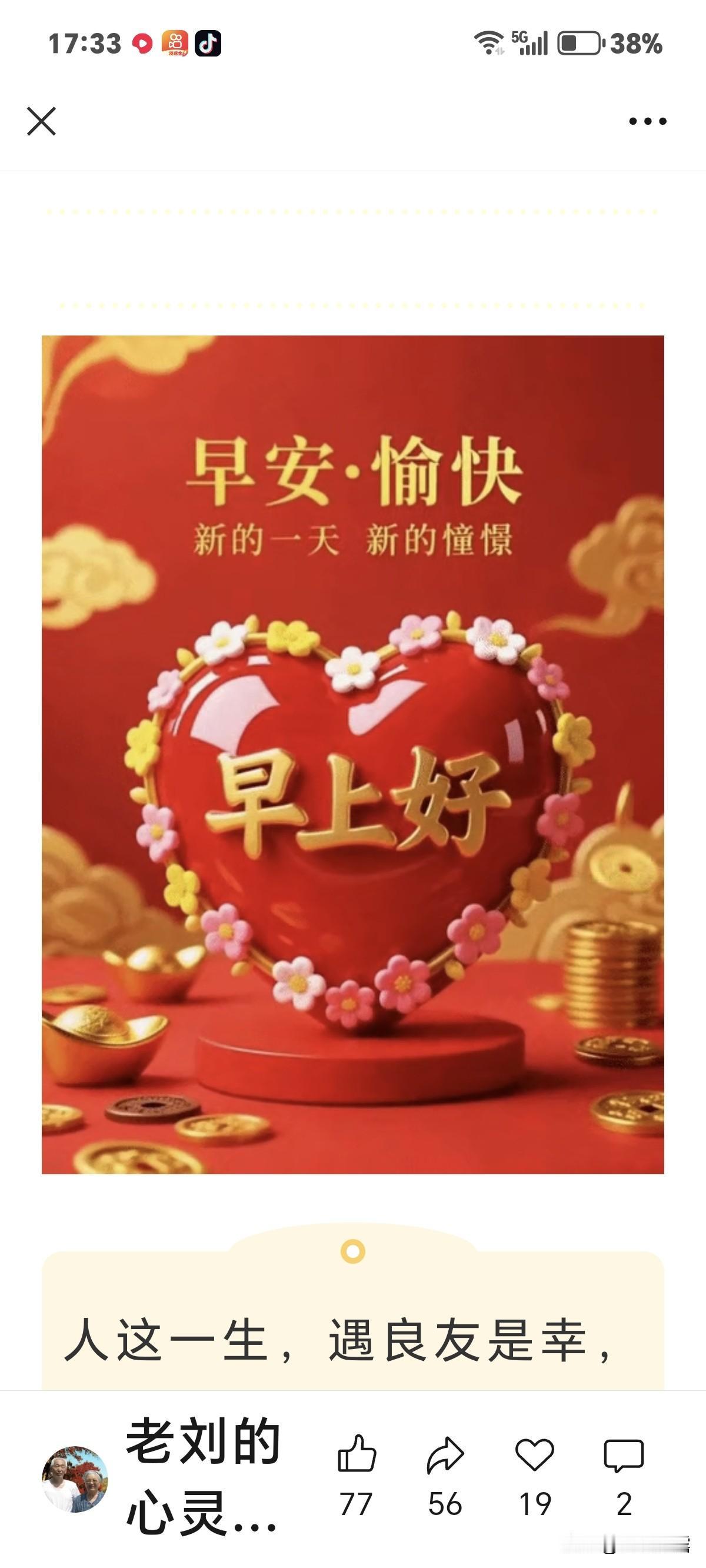 今天是1月17日是周六,隔屏送上我真诚的问候,友友们早上好!祝愿周末大家好好休息,一觉睡到自然醒,心情愉快度周末。迎接每天的平安,守望每天的健康,过好每天的生活,共享每天的阳光,愿我们:友谊地久天长,身体永远安康。早安您好!周六快乐! 问候是暖人的春风, 平安是真诚的祝福, 友情是永久的财富, 健康才是共同的心声。 开心快乐每一天。早上好