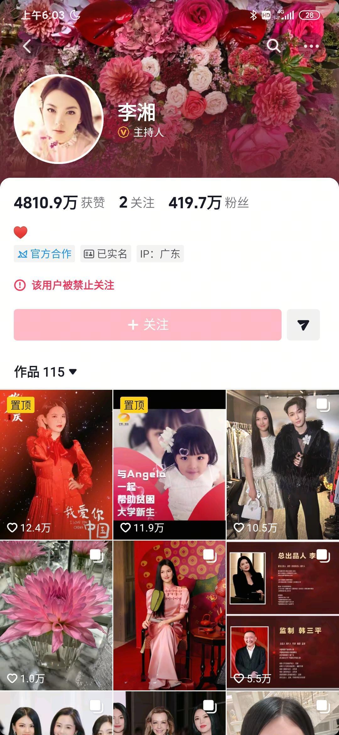 李湘终于把自己炫塌房了,抖音,小红书等各普通都被禁止关注! 李湘年纪轻轻就退休,