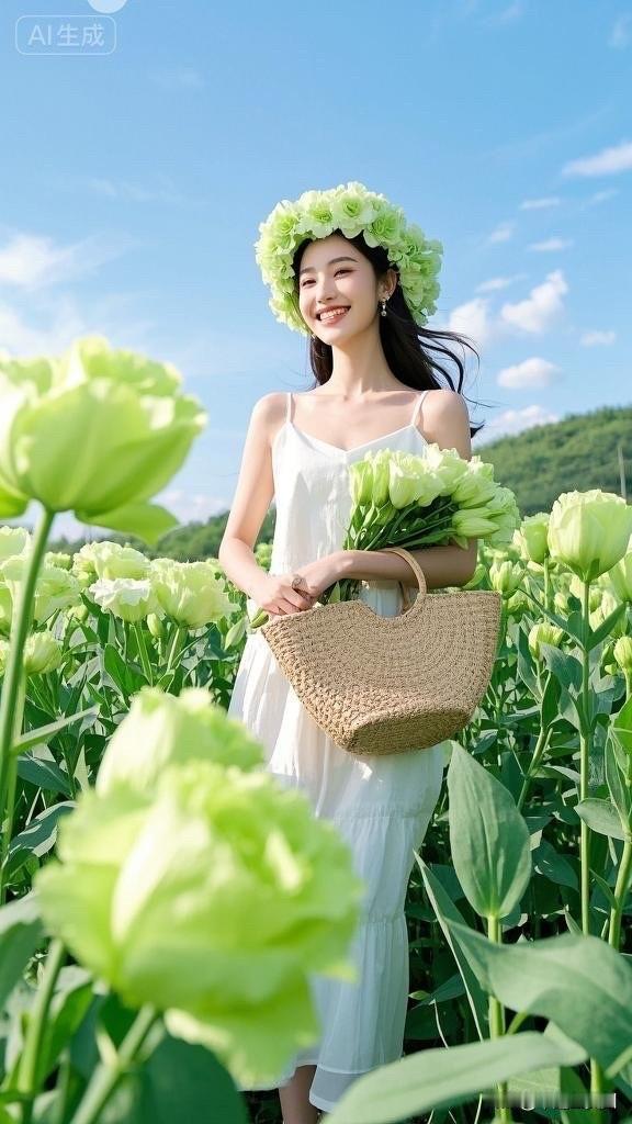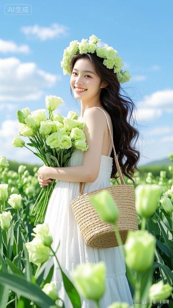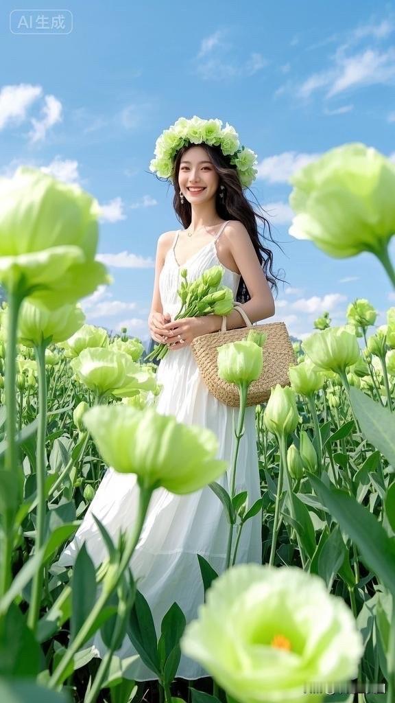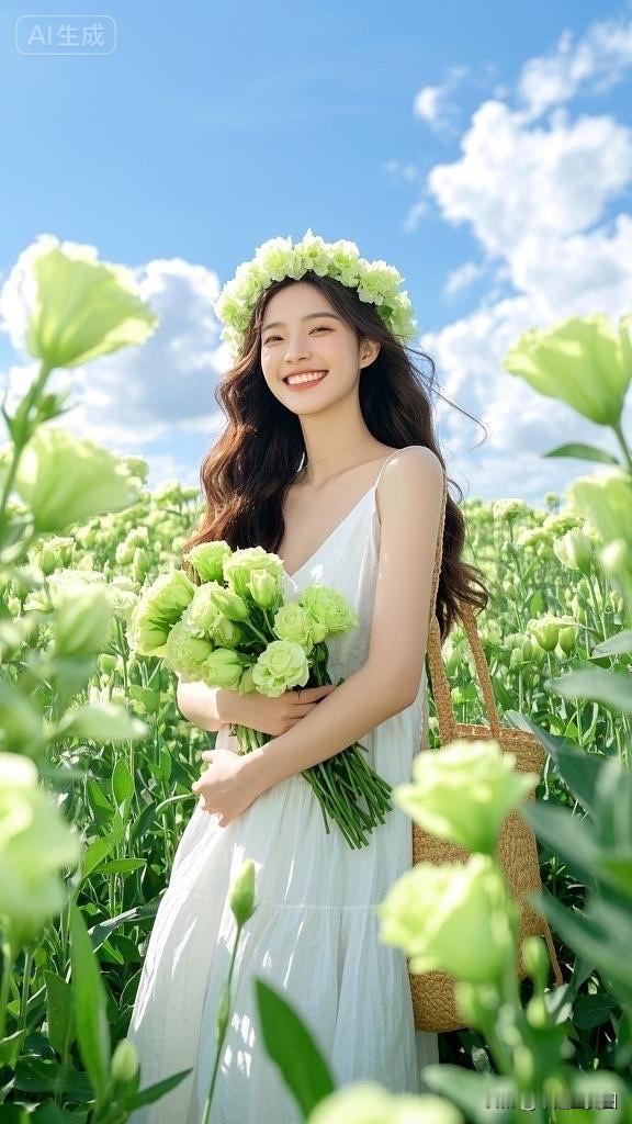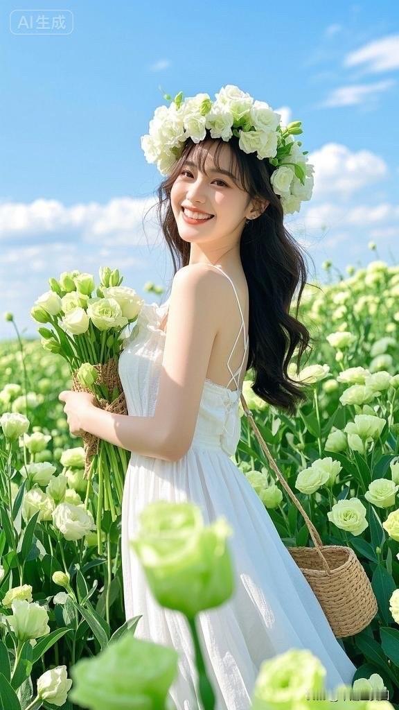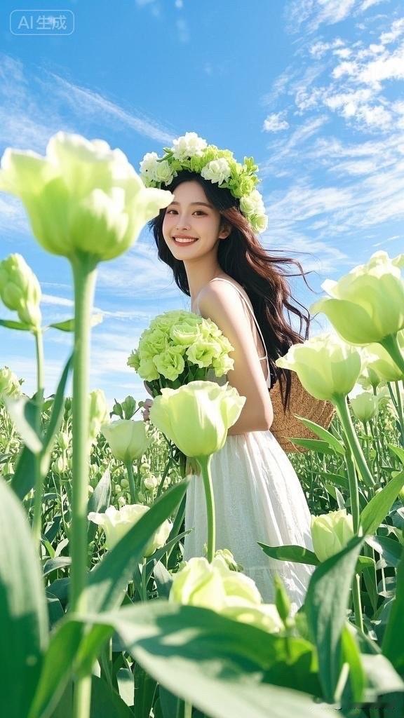 梦幻花海中的白裙少女,微笑如花绽放
