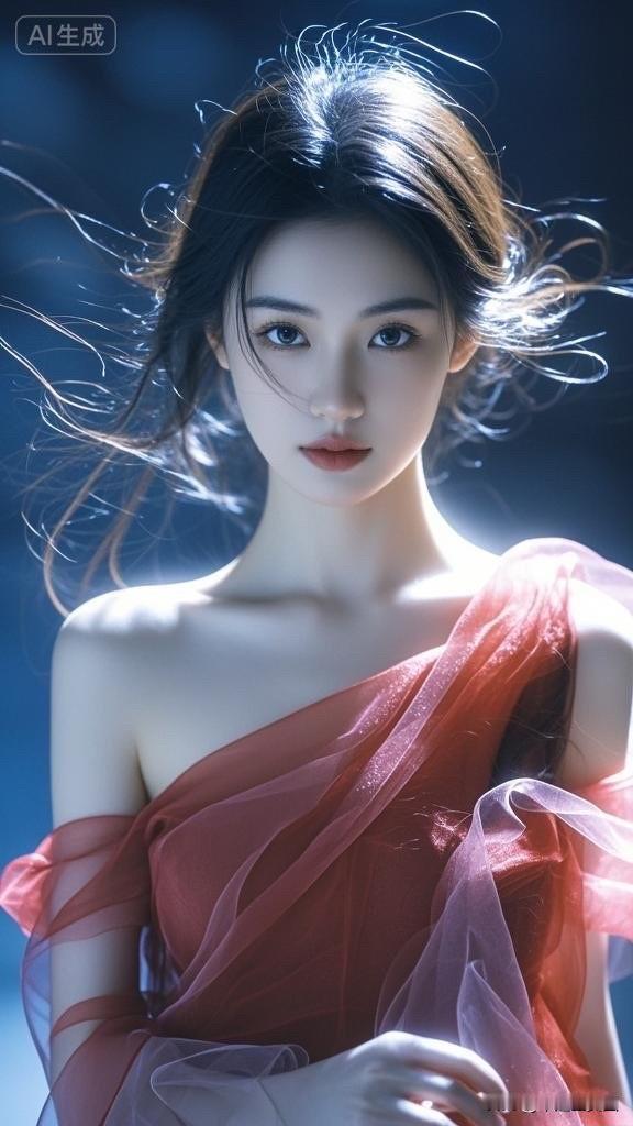 梦幻少女,红纱飘逸,光影交错,美轮美奂。